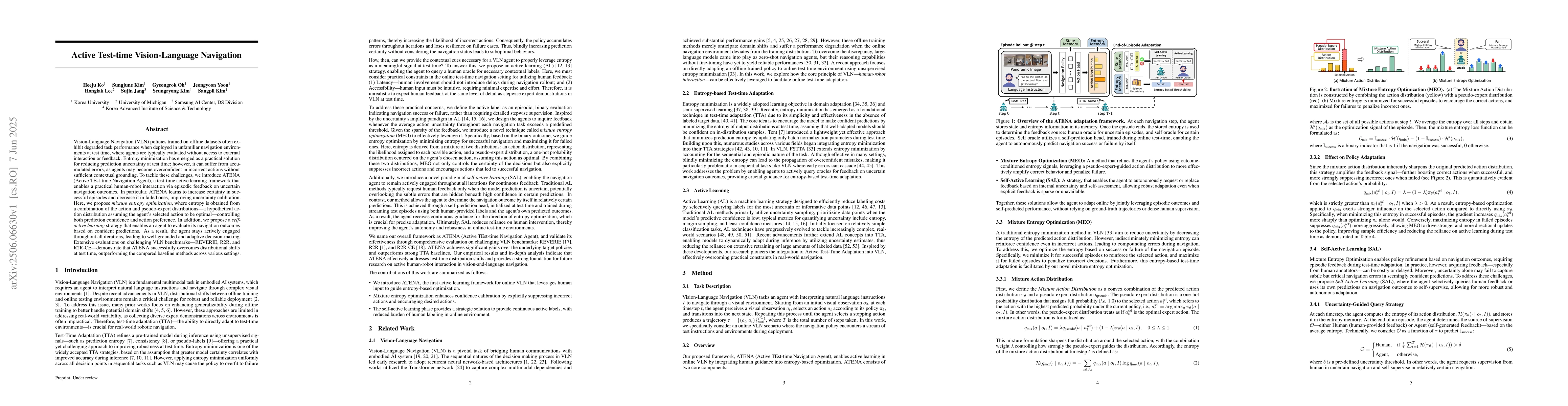 Researchers developed ATENA, a test-time active learning framework that uses mixture entropy optimization to improve uncertainty calibration in Vision-Language Navigation tasks, outperforming baseline methods on challenging benchmarks.
