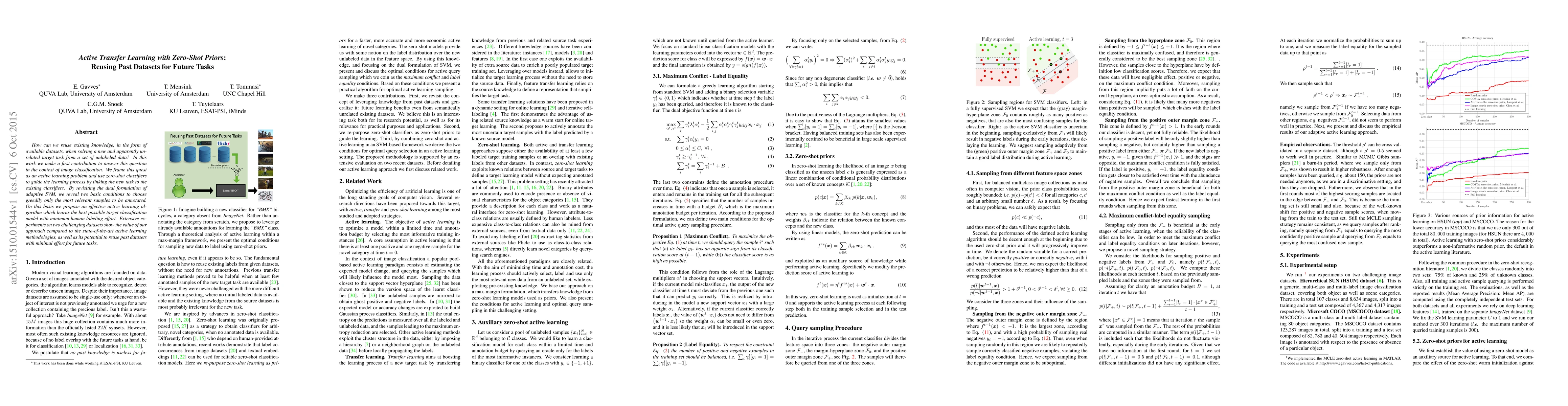 How can we reuse existing knowledge, in the form of available datasets, when solving a new and apparently unrelated target task from a set of unlabeled data? In this work we make a first contribution to answer this question in the context of image classification. We frame this quest as an active learning problem and use zero-shot classifiers to guide the learning process by linking the new task to the existing classifiers. By revisiting the dual formulation of adaptive SVM, we reveal two basic conditions to choose greedily only the most relevant samples to be annotated. On this basis we propose an effective active learning algorithm which learns the best possible target classification model with minimum human labeling effort. Extensive experiments on two challenging datasets show the value of our approach compared to the state-of-the-art active learning methodologies, as well as its potential to reuse past datasets with minimal effort for future tasks.