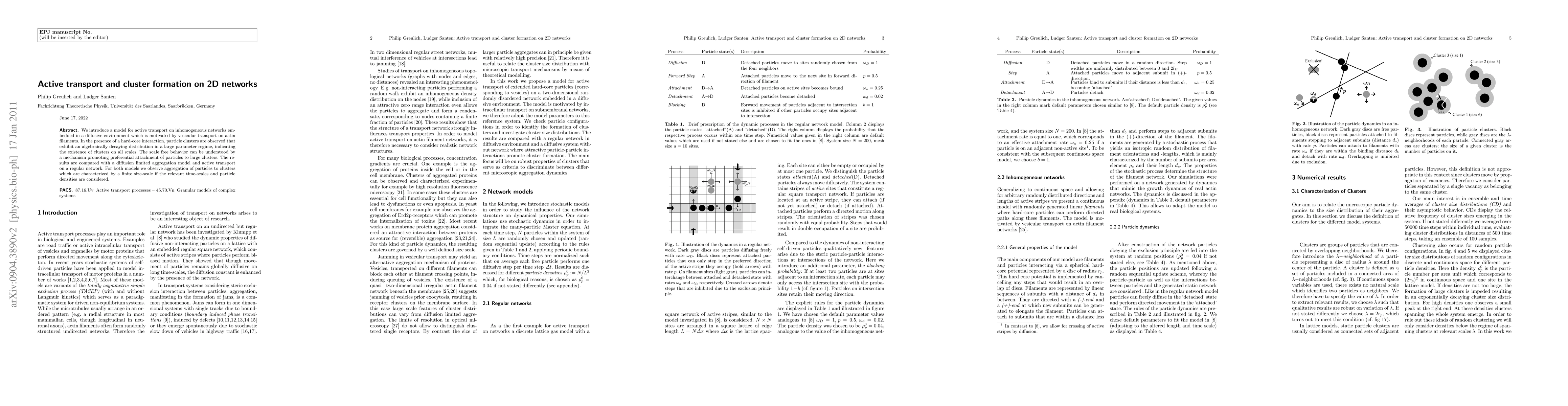 We introduce a model for active transport on inhomogeneous networks embedded in a diffusive environment and investigate the formation of particle clusters. In the presence of a hard-core interaction, cluster sizes exhibit an algebraically decaying distribution in a large parameter regime, indicating the existence of clusters on all scales. The results are compared with a diffusion limited aggregation model and active transport on a regular network. For both models we observe aggregation of particles to clusters which are characterized by a finite size-scale if the relevant time-scales and particle densities are considered.