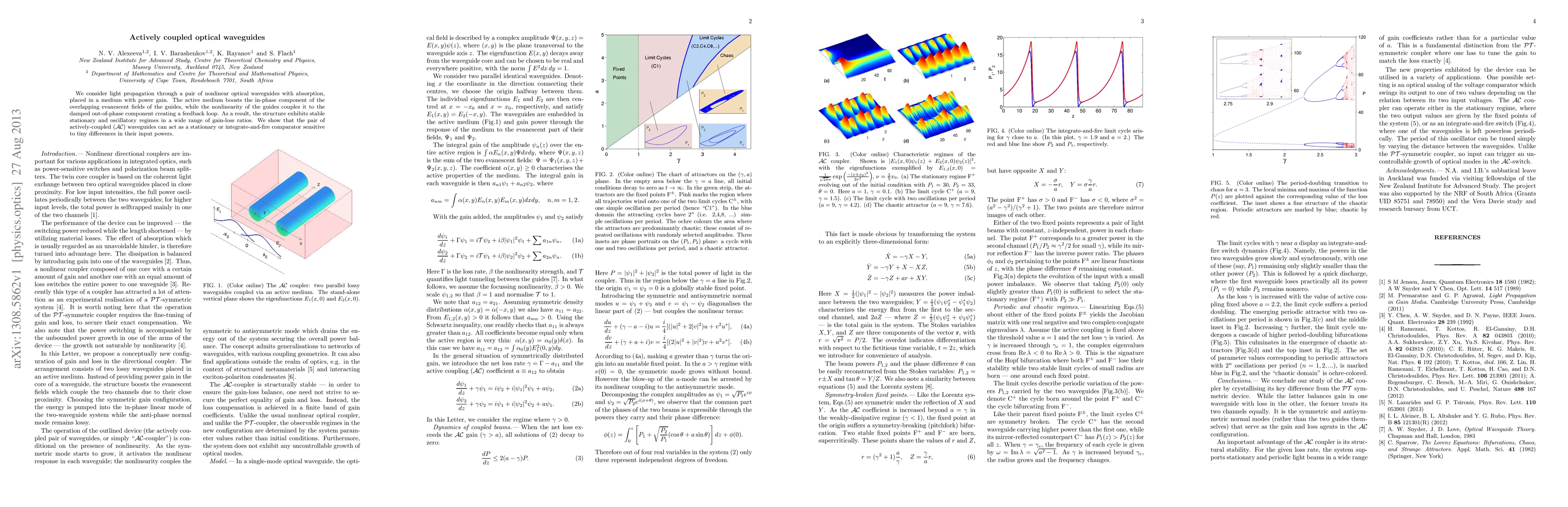 Researchers discover that actively coupled optical waveguides can exhibit stable stationary and oscillatory regimes, making them useful for comparison-sensitive applications.