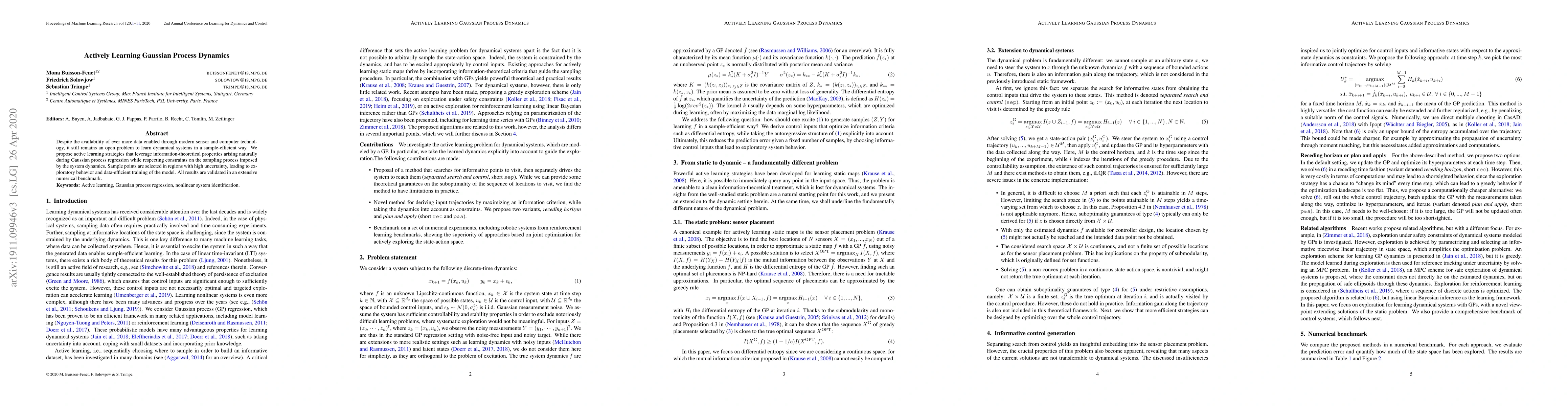 Researchers propose an active learning strategy for Gaussian process dynamics that efficiently samples high-uncertainty regions to learn dynamical systems with minimal data. This approach enhances model training while respecting constraints on the sampling process.