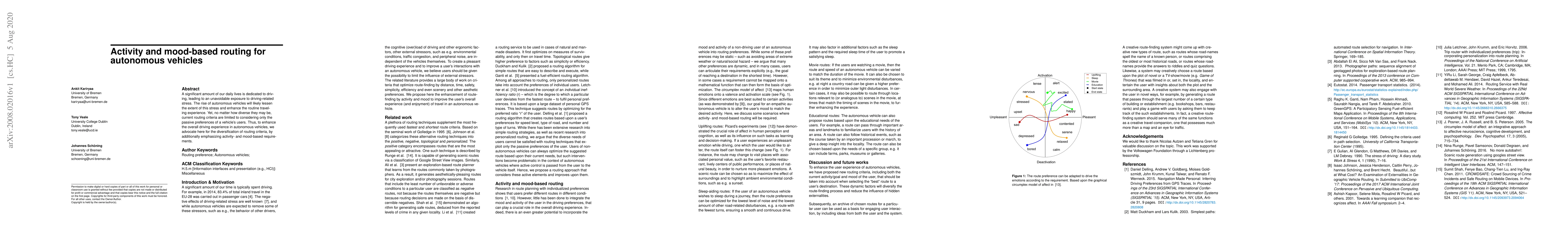 This paper proposes enhancing autonomous vehicle routing by incorporating activity and mood-based criteria to improve the driving experience, moving beyond traditional passive preferences. The aim is to reduce driving-related stress and elevate the overall travel experience.