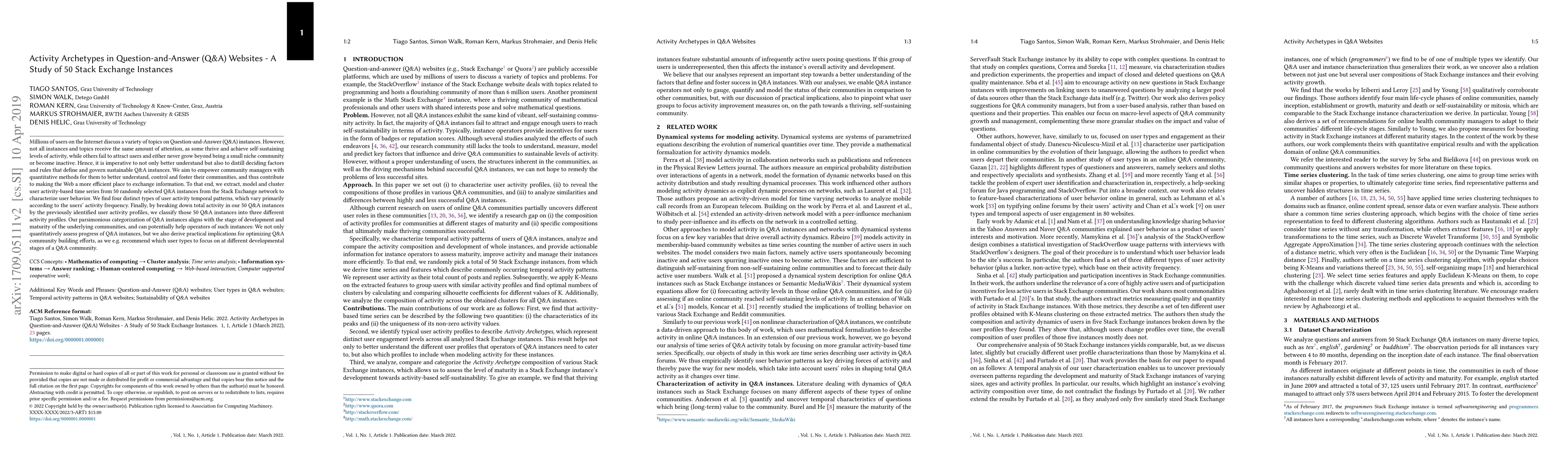 This study analyzes 50 Stack Exchange Q&A instances to identify four distinct user activity archetypes based on frequency, and categorizes the instances into three activity profiles. The findings provide community managers with quantitative insights to optimize community development and foster sustainable growth.