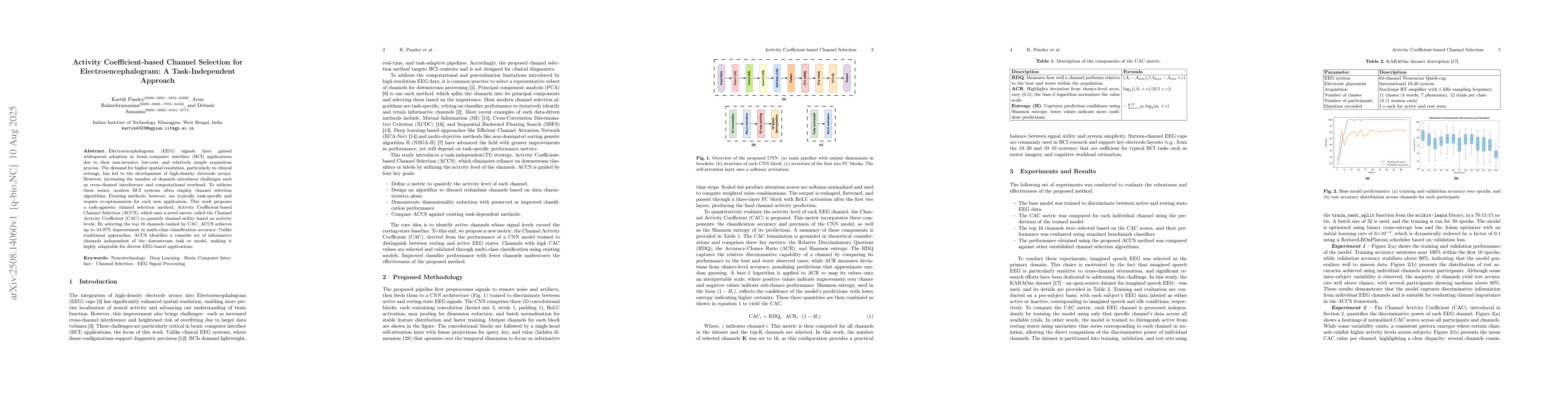 Electroencephalogram (EEG) signals have gained widespread adoption in brain-computer interface (BCI) applications due to their non-invasive, low-cost, and relatively simple acquisition process. The demand for higher spatial resolution, particularly in clinical settings, has led to the development of high-density electrode arrays. However, increasing the number of channels introduces challenges such as cross-channel interference and computational overhead. To address these issues, modern BCI systems often employ channel selection algorithms. Existing methods, however, are typically task-specific and require re-optimization for each new application. This work proposes a task-agnostic channel selection method, Activity Coefficient-based Channel Selection (ACCS), which uses a novel metric called the Channel Activity Coefficient (CAC) to quantify channel utility based on activity levels. By selecting the top 16 channels ranked by CAC, ACCS achieves up to 34.97% improvement in multi-class classification accuracy. Unlike traditional approaches, ACCS identifies a reusable set of informative channels independent of the downstream task or model, making it highly adaptable for diverse EEG-based applications.