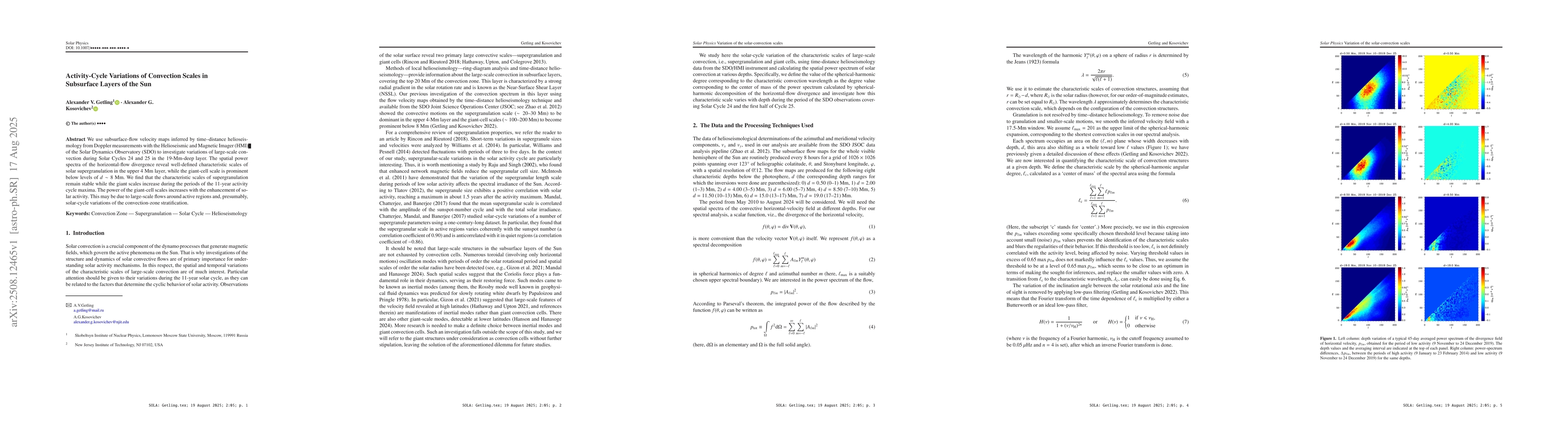 We use subsurface-flow velocity maps inferred by time--distance helioseismology from Doppler measurements with the Helioseismic and Magnetic Imager (HMI) of the Solar Dynamics Observatory (SDO) to investigate variations of large-scale convection during Solar Cycles 24 and 25 in the 19-Mm-deep layer. The spatial power spectra of the horizontal-flow divergence reveal well-defined characteristic scales of solar supergranulation in the upper 4 Mm layer, while the giant-cell scale is prominent below levels of d ~ 8 Mm. We find that the characteristic scales of supergranulation remain stable while the giant scales increase during the periods of the 11-year activity cycle maxima. The power of the giant-cell scales increases with the enhancement of solar activity. This may be due to large-scale flows around active regions and, presumably, solar-cycle variations of the convection-zone stratification.