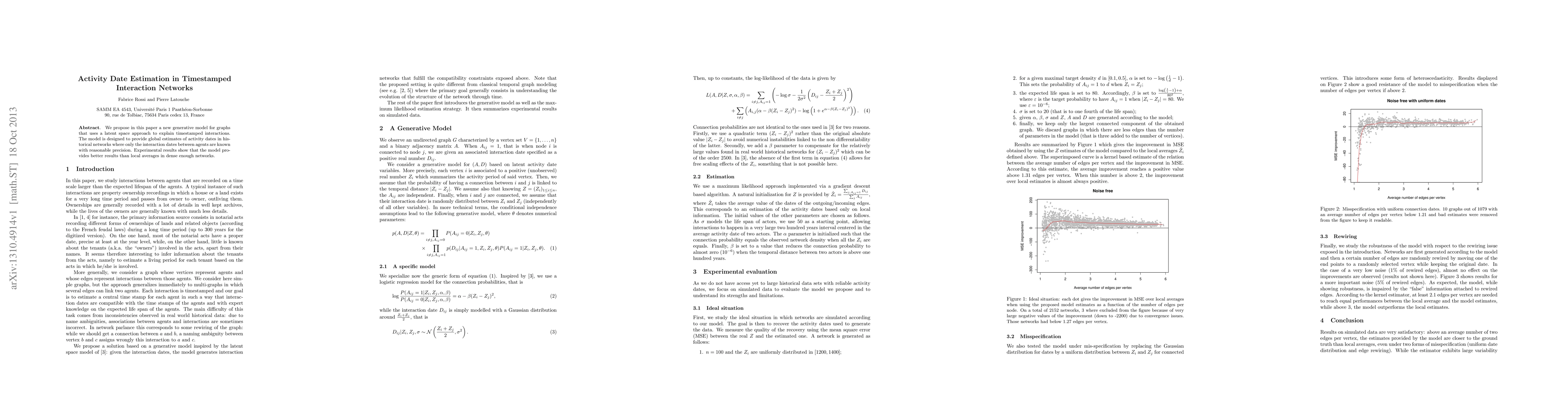 We propose in this paper a new generative model for graphs that uses a latent space approach to explain timestamped interactions. The model is designed to provide global estimates of activity dates in historical networks where only the interaction dates between agents are known with reasonable precision. Experimental results show that the model provides better results than local averages in dense enough networks
