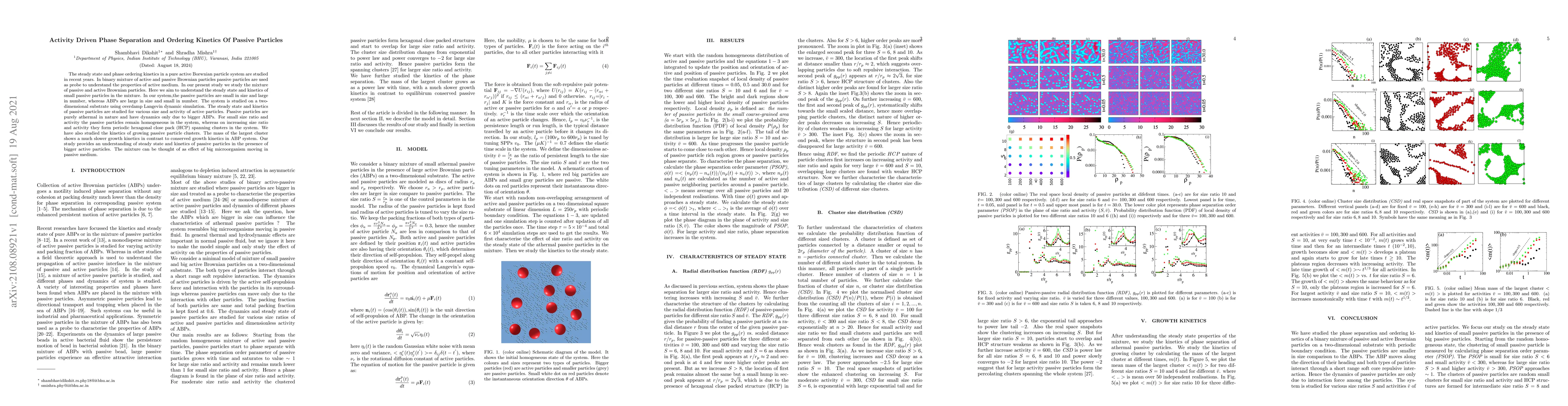 The steady state and phase ordering kinetics in a pure active Borwnian particle system are studied in recent years. In binary mixture of active and passive Brownian particles passive particles are used as probe to understand the properties of active medium. In our present study we study the mixture of passive and active Brownian particles. Here we aim to understand the steady state and kinetics of small passive particles in the mixture. In our system,the passive particles are small in size and large in number, whereas ABPs are large in size and small in number. The system is studied on a two-dimensional substrate using overdamp Langevin dynamic simulation. The steady state and kinetics of passive particles are studied for various size and activity of active particles. Passive particles are purely athermal in nature and have dynamics only due to bigger ABPs. For small size ratio and activity the passive particles remain homogeneous in the system, whereas on increasing size ratio and activity they form periodic hexagonal close pack (HCP) spanning clusters in the system. We have also studied the kinetics of growing passive particle clusters. The mass of the largest cluster shows a much slower growth kinetics in contrast to conserved growth kinetics in ABP system. Our study provides an understanding of steady state and kinetics of passive particles in the presence of bigger active particles. The mixture can be thought of as effect of big microorganism moving in passive medium.