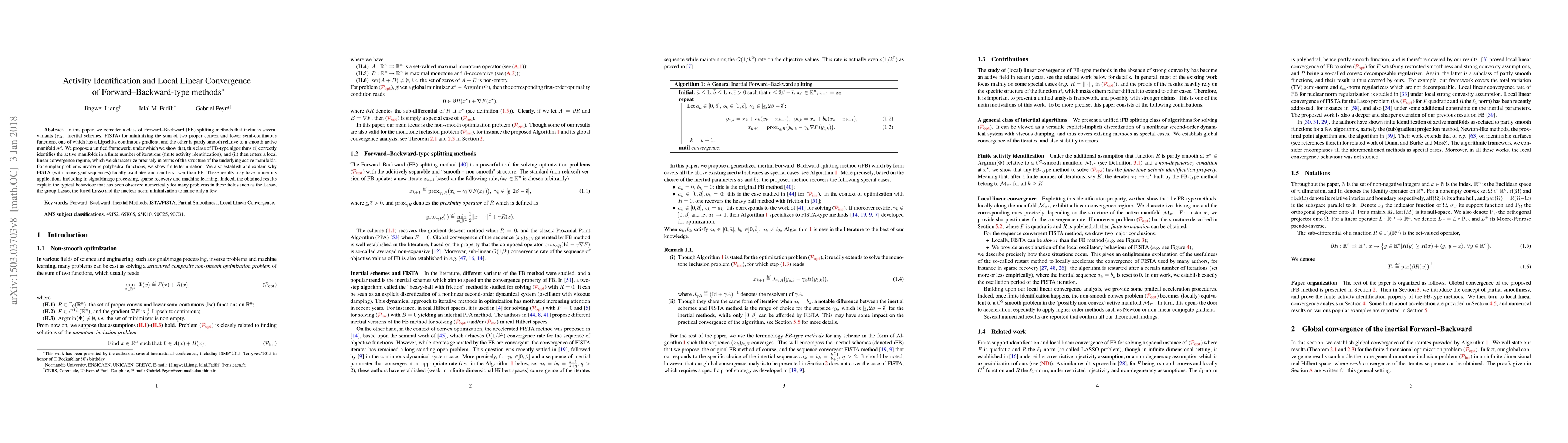 In this paper, we consider a class of Forward--Backward (FB) splitting methods that includes several variants (e.g. inertial schemes, FISTA) for minimizing the sum of two proper convex and lower semi-continuous functions, one of which has a Lipschitz continuous gradient, and the other is partly smooth relatively to a smooth active manifold $\mathcal{M}$. We propose a unified framework, under which we show that, this class of FB-type algorithms (i) correctly identifies the active manifolds in a finite number of iterations (finite activity identification), and (ii) then enters a local linear convergence regime, which we characterize precisely in terms of the structure of the underlying active manifolds. For simpler problems involving polyhedral functions, we show finite termination. We also establish and explain why FISTA (with convergent sequences) locally oscillates and can be slower than FB. These results may have numerous applications including in signal/image processing, sparse recovery and machine learning. Indeed, the obtained results explain the typical behaviour that has been observed numerically for many problems in these fields such as the Lasso, the group Lasso, the fused Lasso and the nuclear norm regularization to name only a few.