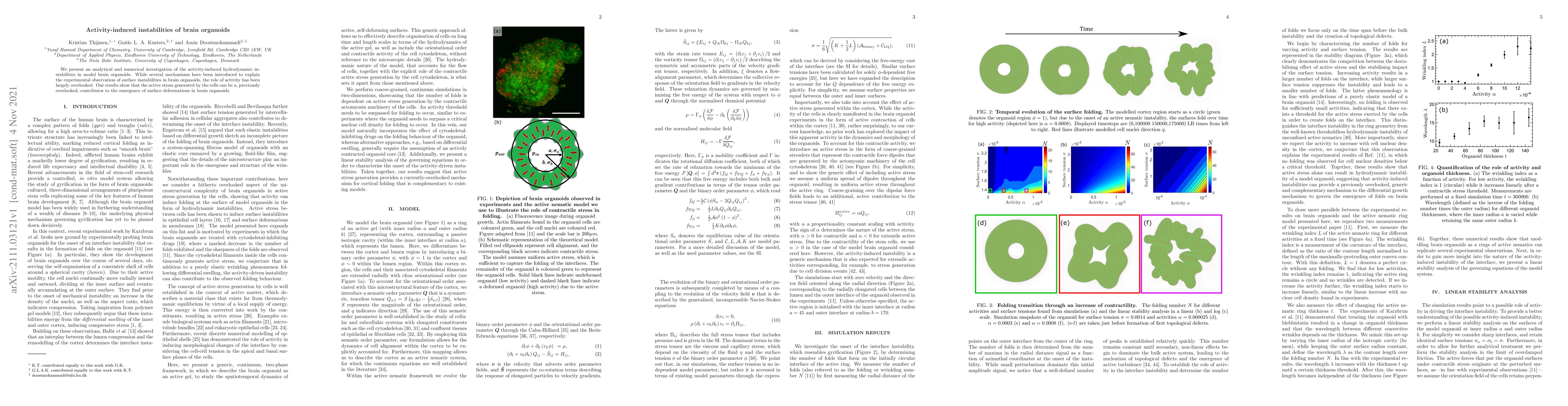 This study investigates how cellular activity induces hydrodynamic instabilities in brain organoids, revealing that the active stress from cells significantly contributes to surface deformations, a factor previously underappreciated in experimental observations.