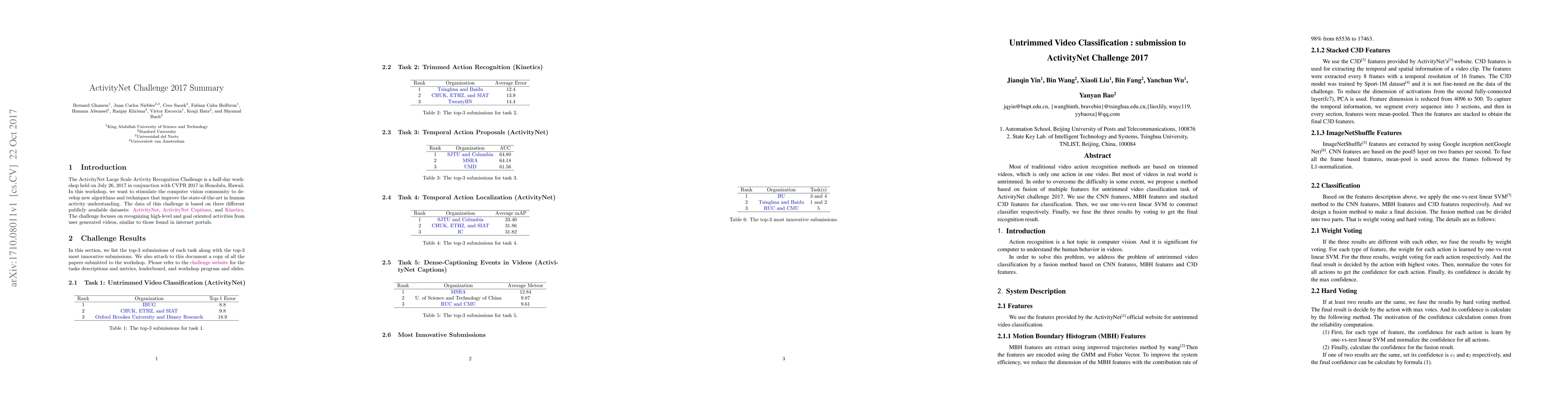 The ActivityNet Large Scale Activity Recognition Challenge 2017 Summary: results and challenge participants papers.
