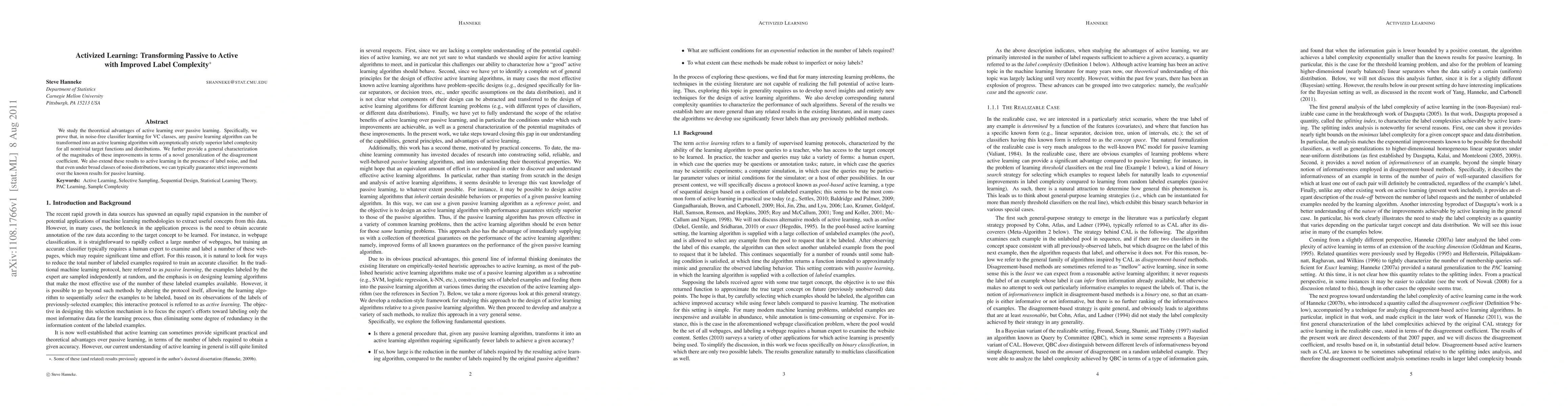 Researchers demonstrate that active learning can transform passive learning with improved label complexity, leading to asymptotically strictly superior results even in noisy environments.