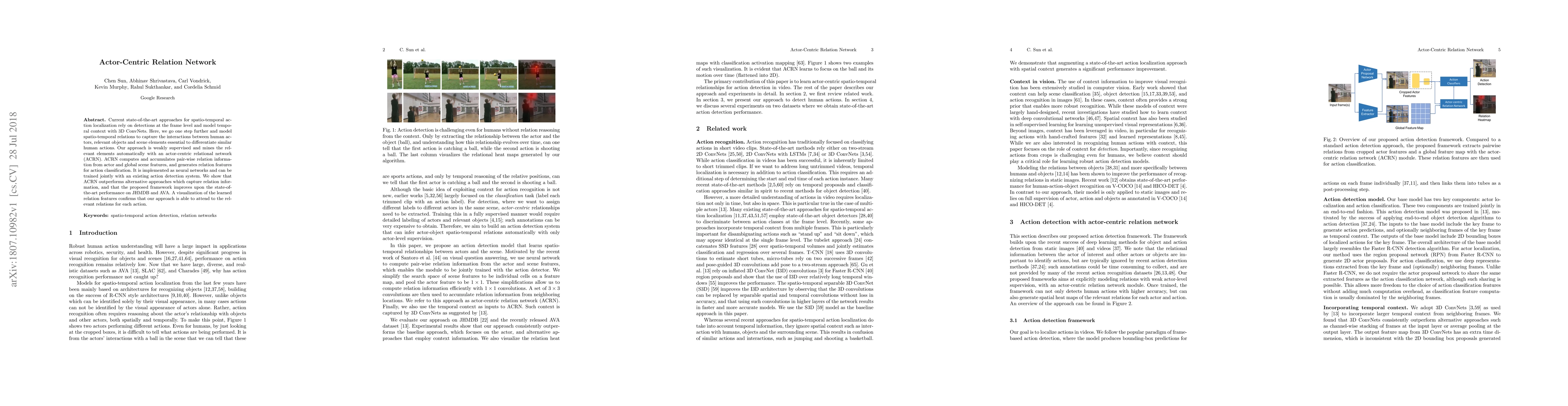 This paper introduces an actor-centric relational network (ACRN) to enhance spatio-temporal action localization by modeling interactions between actors, objects, and scene elements. ACRN outperforms existing methods and improves state-of-the-art performance on JHMDB and AVA datasets.