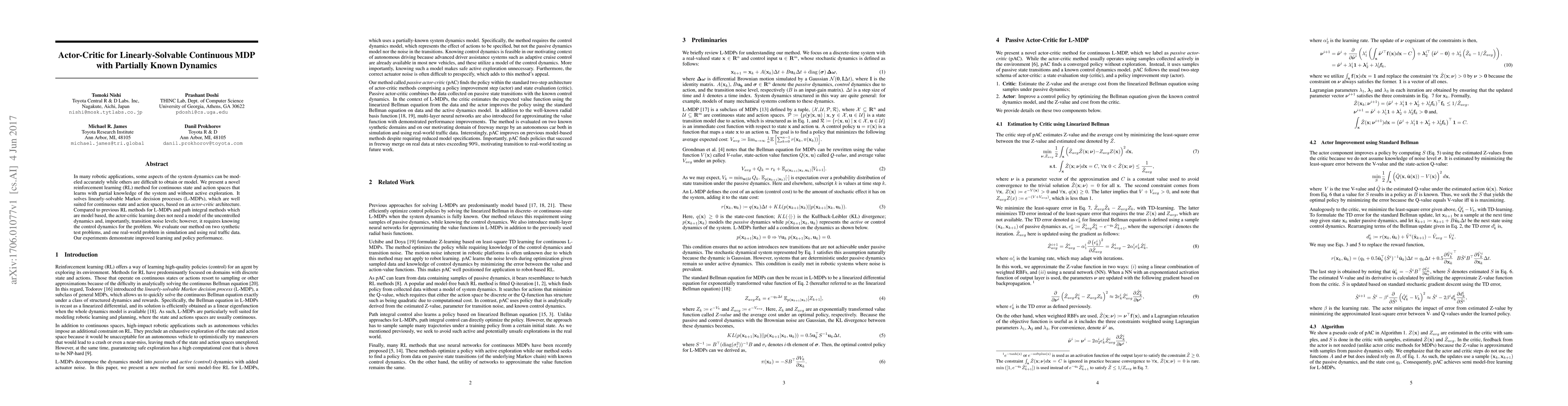 This paper presents an actor-critic method for solving linearly-solvable MDPs with partial knowledge of dynamics, improving learning and policy performance in continuous state and action spaces.