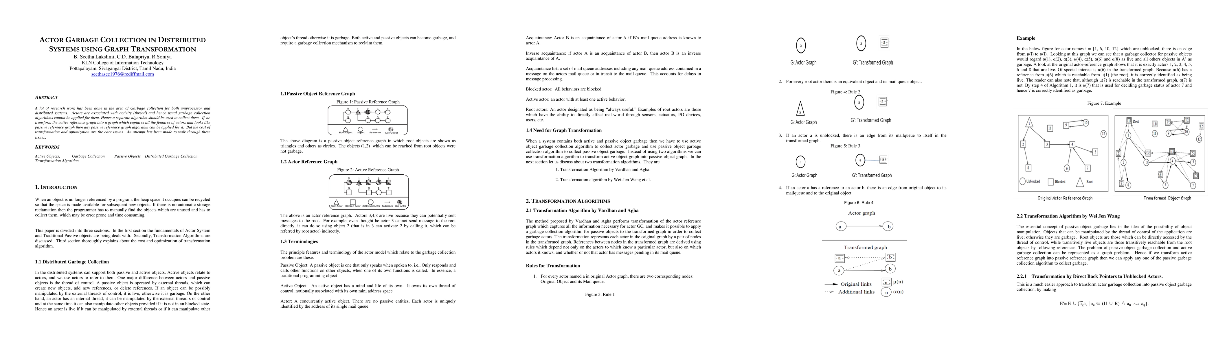 A lot of research work has been done in the area of Garbage collection for both uniprocessor and distributed systems. Actors are associated with activity (thread) and hence usual garbage collection algorithms cannot be applied for them. Hence a separate algorithm should be used to collect them. If we transform the active reference graph into a graph which captures all the features of actors and looks like passive reference graph then any passive reference graph algorithm can be applied for it. But the cost of transformation and optimization are the core issues. An attempt has been made to walk through these issues.