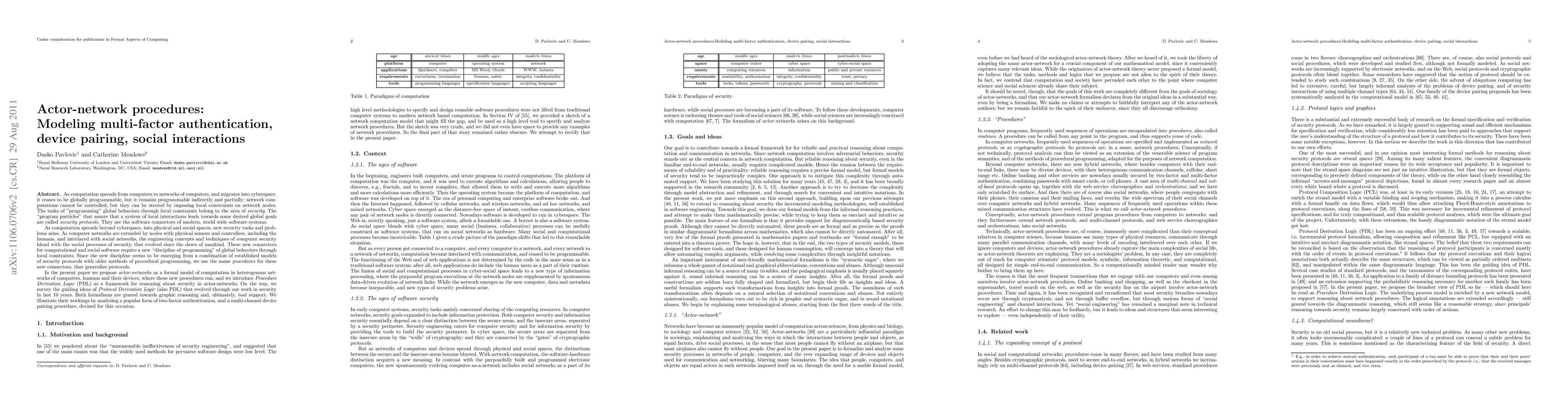 This paper proposes actor-networks as a formal model for computing in heterogeneous networks, integrating computers, humans, and devices. It introduces Procedure Derivation Logic (PDL) to reason about security within these networks, illustrated through analyses of two-factor authentication and device pairing procedures.