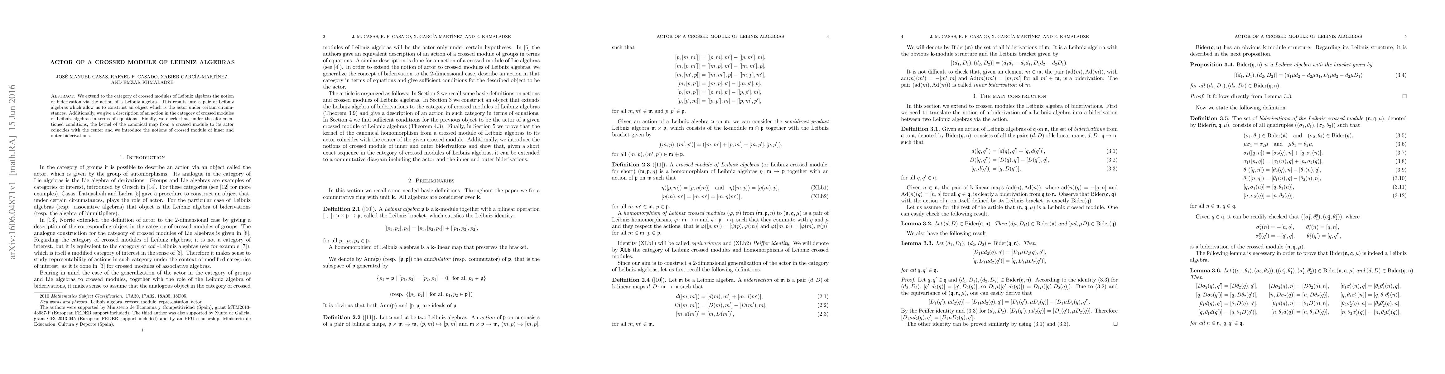 This paper extends the concept of biderivation to crossed modules of Leibniz algebras, constructing an actor object under specific conditions. It also describes the action in this category via equations and analyzes the kernel of the canonical map in relation to the center, introducing inner and outer biderivation notions.