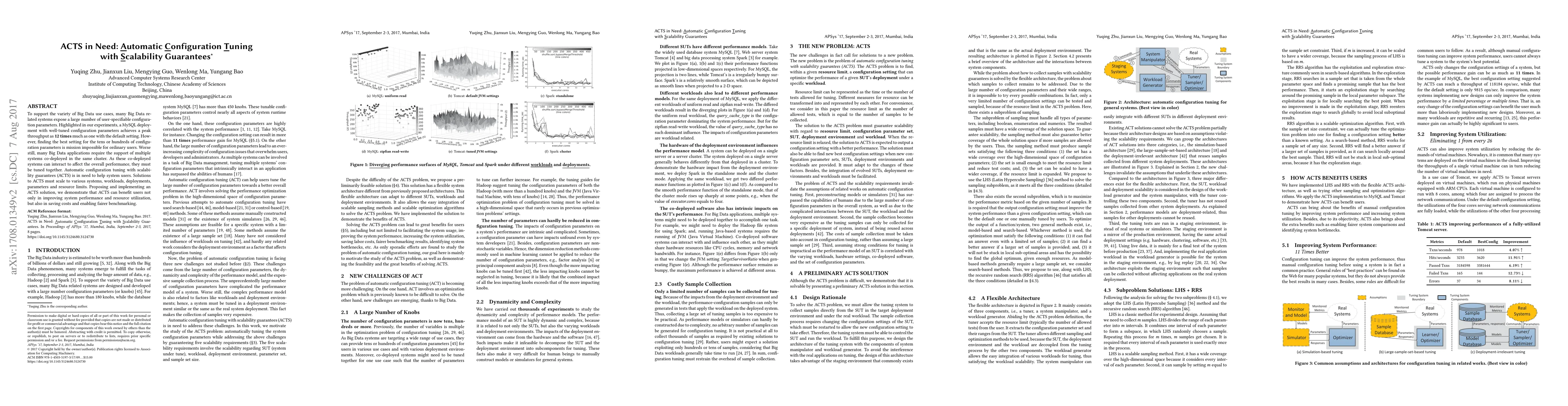 To support the variety of Big Data use cases, many Big Data related systems expose a large number of user-specifiable configuration parameters. Highlighted in our experiments, a MySQL deployment with well-tuned configuration parameters achieves a peak throughput as 12 times much as one with the default setting. However, finding the best setting for the tens or hundreds of configuration parameters is mission impossible for ordinary users. Worse still, many Big Data applications require the support of multiple systems co-deployed in the same cluster. As these co-deployed systems can interact to affect the overall performance, they must be tuned together. Automatic configuration tuning with scalability guarantees (ACTS) is in need to help system users. Solutions to ACTS must scale to various systems, workloads, deployments, parameters and resource limits. Proposing and implementing an ACTS solution, we demonstrate that ACTS can benefit users not only in improving system performance and resource utilization, but also in saving costs and enabling fairer benchmarking.