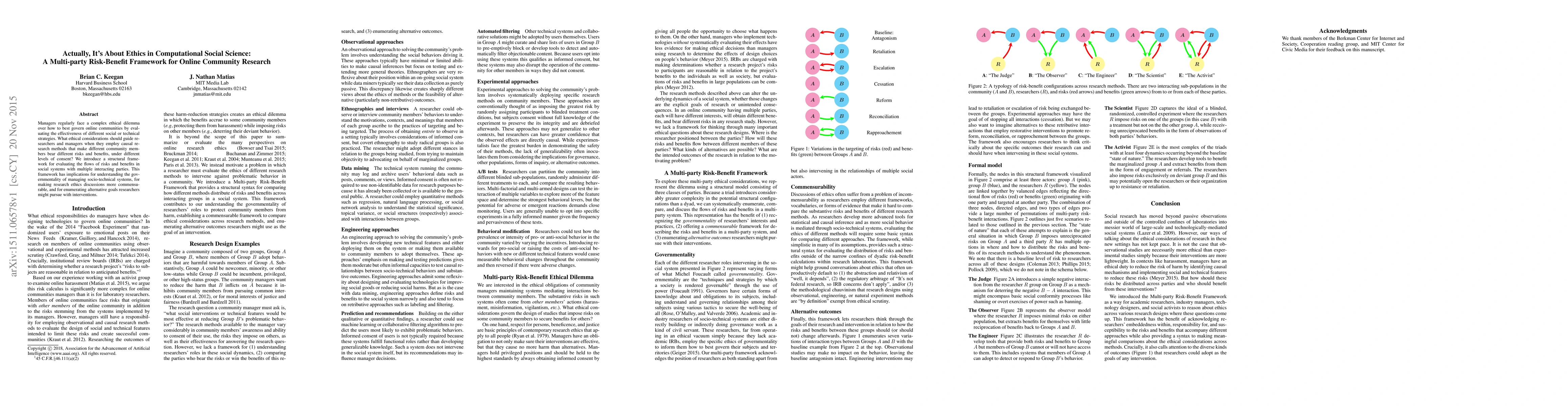 Managers regularly face a complex ethical dilemma over how to best govern online communities by evaluating the effectiveness of different social or technical strategies. What ethical considerations should guide researchers and managers when they employ causal research methods that make different community members bear different risks and benefits, under different levels of consent? We introduce a structural framework for evaluating the flows of risks and benefits in social systems with multiple interacting parties. This framework has implications for understanding the governmentality of managing socio-technical systems, for making research ethics discussions more commensurable, and for enumerating alternative goals researchers might pursue with interventions.
