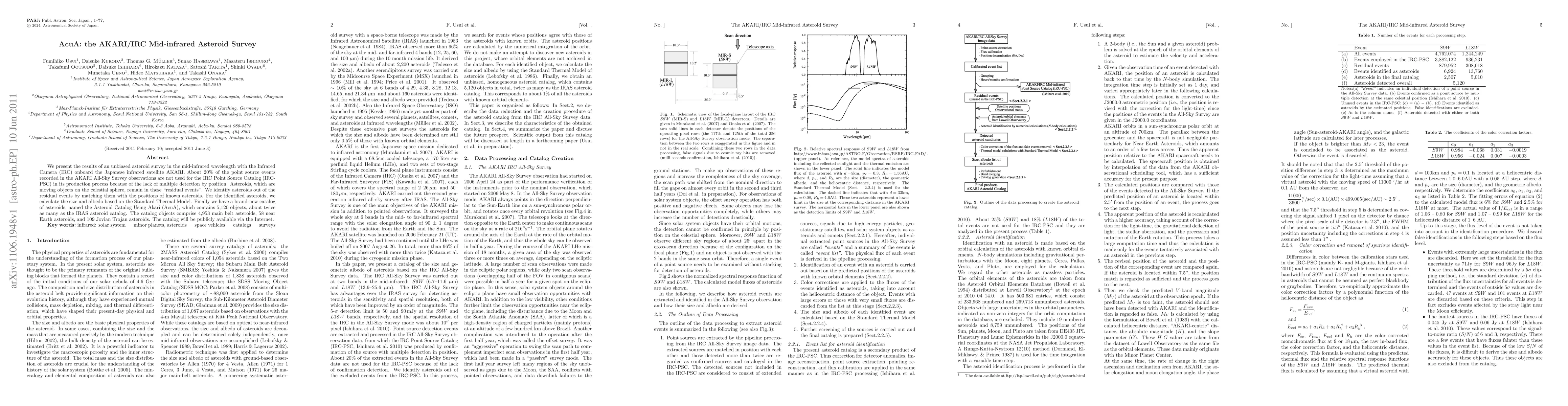 The AcuA survey, conducted using AKARI's IRC, identifies and catalogs 5,120 asteroids from residual mid-infrared data, doubling the number of objects in the IRAS catalog. The new catalog includes main belt, near Earth, and Jovian Trojan asteroids, and will be publicly accessible online.