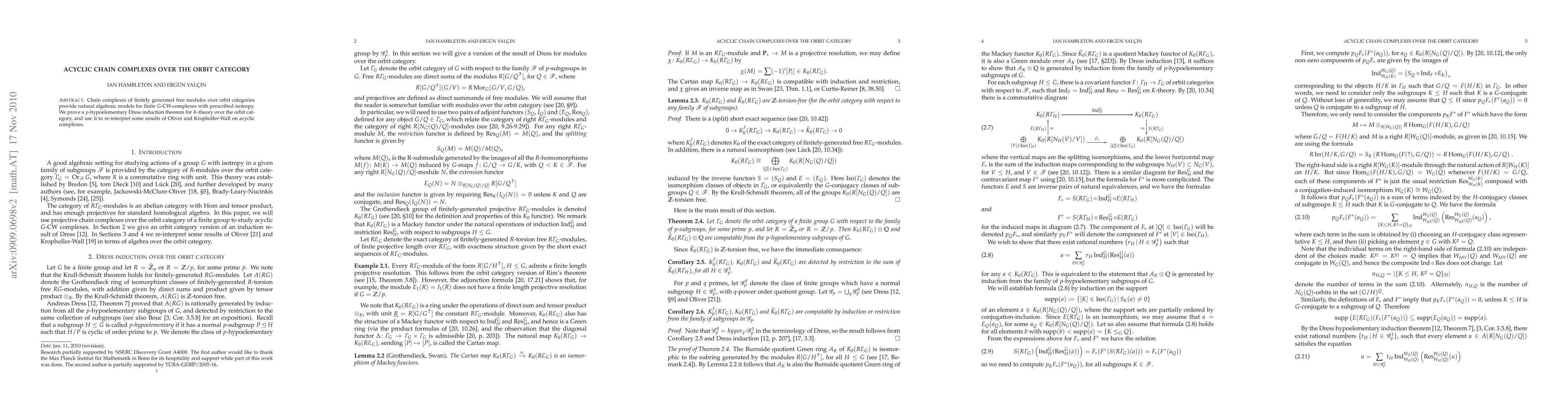 Chain complexes of finitely generated free modules over orbit categories provide natural algebraic models for finite G-CW complexes with prescribed isotropy. We prove a p-hypoelementary Dress induction theorem for K-theory over the orbit category of a finite group, and use it to re-interpret some results of Oliver and Kropholler-Wall on acyclic complexes.