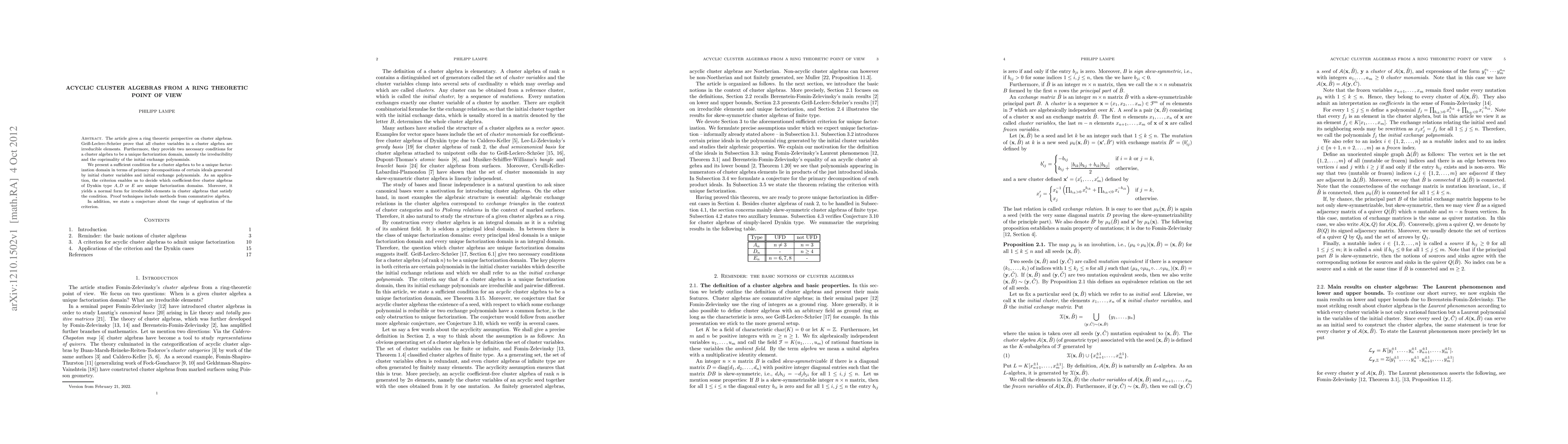 The article gives a ring theoretic perspective on cluster algebras. Gei{\ss}-Leclerc-Schr\"oer prove that all cluster variables in a cluster algebra are irreducible elements. Furthermore, they provide two necessary conditions for a cluster algebra to be a unique factorization domain, namely the irreducibility and the coprimality of the initial exchange polynomials. We present a sufficient condition for a cluster algebra to be a unique factorization domain in terms of primary decompositions of certain ideals generated by initial cluster variables and initial exchange polynomials. As an application, the criterion enables us to decide which coefficient-free cluster algebras of Dynkin type A, D or E are unique factorization domains. Moreover, it yields a normal form for irreducible elements in cluster algebras that satisfy the condition. Proof techniques include methods from commutative algebra. In addition, we state a conjecture about the range of application of the criterion.