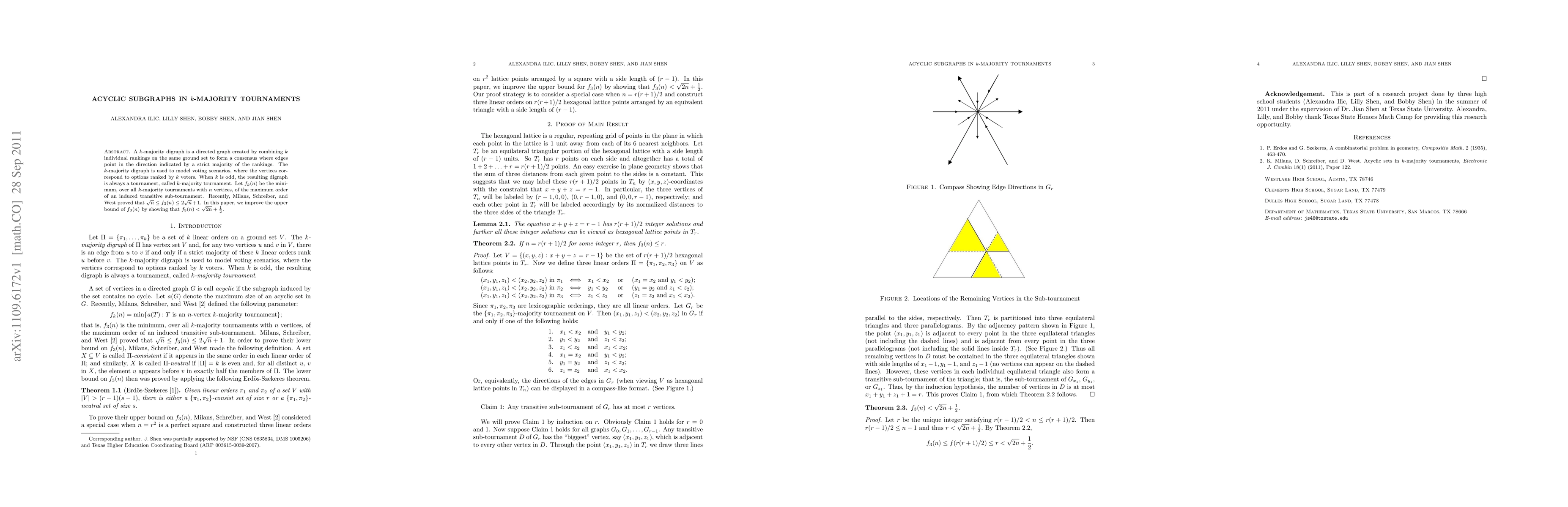 This paper investigates the properties of $k$-majority tournaments, specifically focusing on the maximum order of induced transitive sub-tournaments. It improves the upper bound for $f_3(n)$, showing that $f_3(n) < \sqrt{2n} + \frac{1}{2}$.