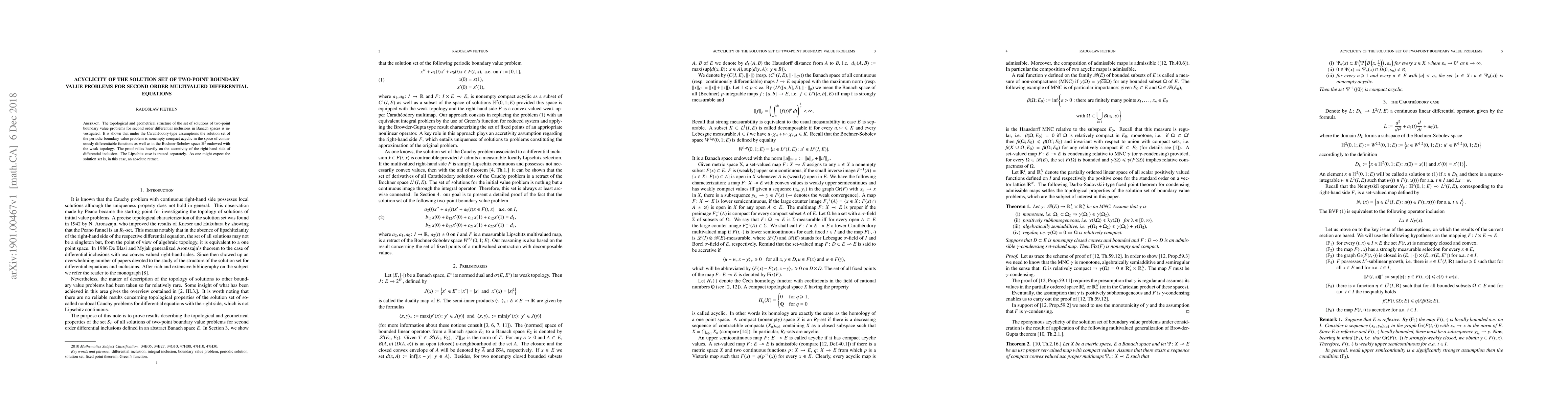 This paper investigates the topological structure of solution sets for second-order differential inclusions under two-point boundary conditions. It demonstrates that the solution set is nonempty, compact, and acyclic under Carathéodory-type conditions, relying on the accretivity of the differential inclusion's right-hand side.