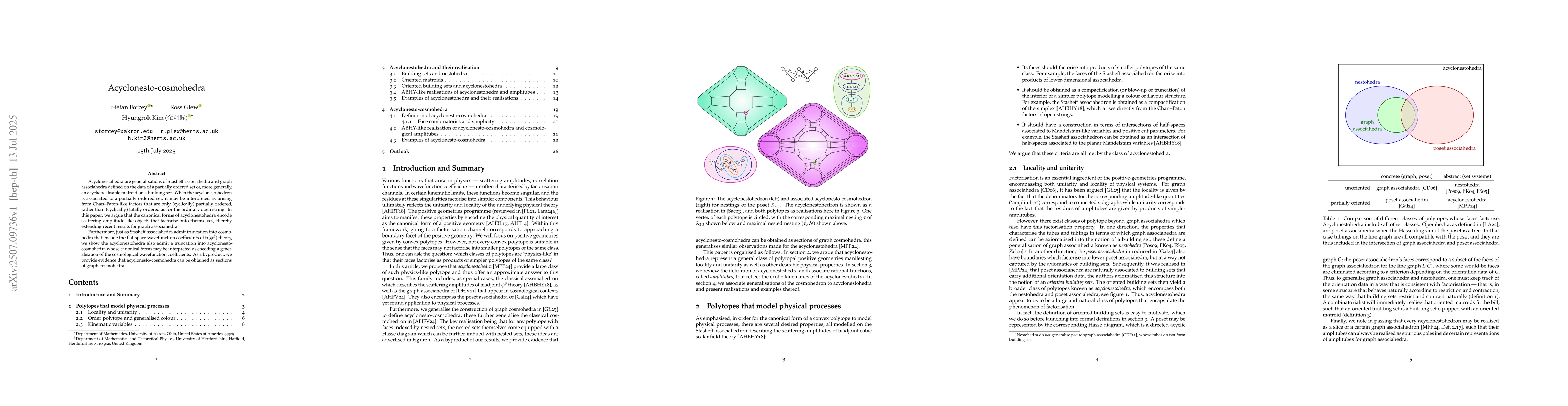 Acyclonestohedra are generalisations of Stasheff associahedra and graph associahedra defined on the data of a partially ordered set or, more generally, an acyclic realisable matroid on a building set. When the acyclonestohedron is associated to a partially ordered set, it may be interpreted as arising from Chan-Paton-like factors that are only (cyclically) partially ordered, rather than (cyclically) totally ordered as for the ordinary open string. In this paper, we argue that the canonical forms of acyclonestohedra encode scattering-amplitude-like objects that factorise onto themselves, thereby extending recent results for graph associahedra. Furthermore, just as Stasheff associahedra admit truncation into cosmohedra that encode the flat-space wavefunction coefficients of $\operatorname{tr}(\phi^3)$ theory, we show the acyclonestohedra also admit a truncation into acyclonesto-cosmohedra whose canonical forms may be interpreted as encoding a generalisation of the cosmological wavefunction coefficients. As a byproduct, we provide evidence that acyclonesto-cosmohedra can be obtained as sections of graph cosmohedra.