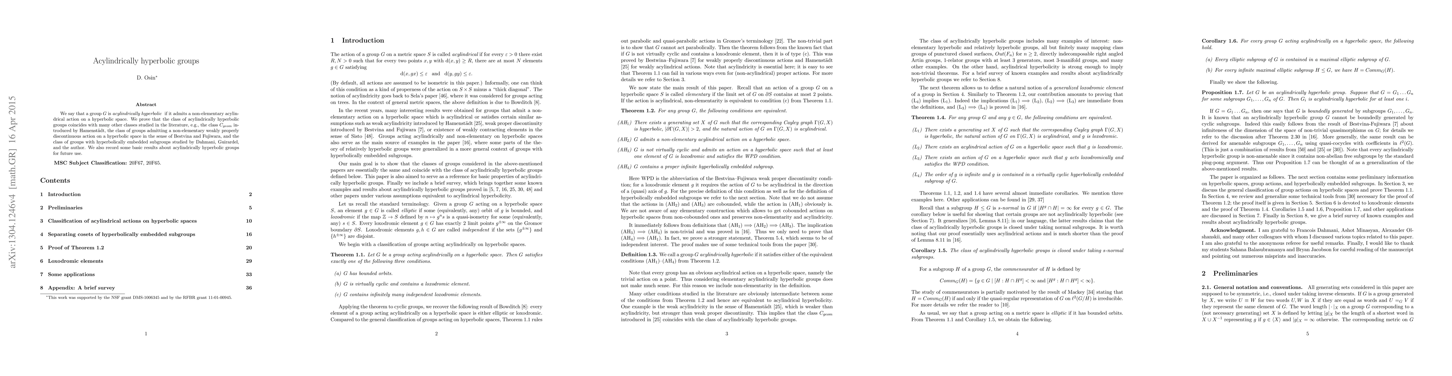 Summary: The paper establishes that acylindrically hyperbolic groups coincide with several previously studied classes, including those with specific geometric and hyperbolic properties, and highlights fundamental results about these groups for future research.