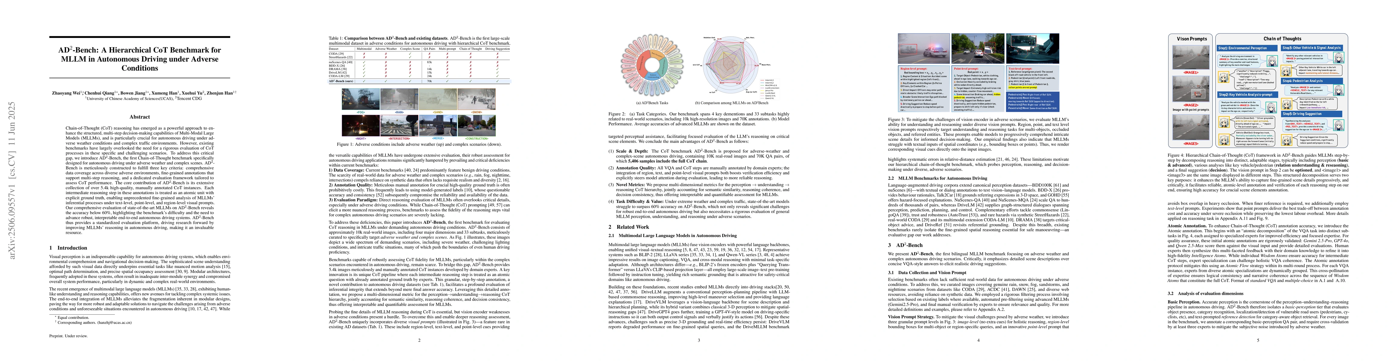 Researchers introduce AD^2-Bench, a Chain-of-Thought benchmark for autonomous driving with adverse weather conditions, to evaluate Multi-Modal Large Models' reasoning capabilities.