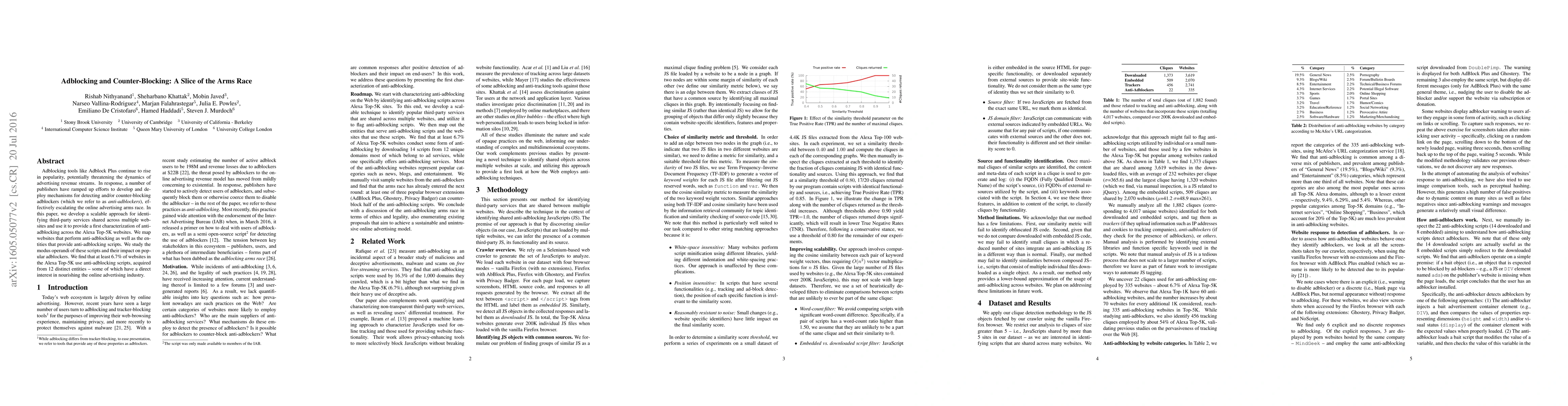 This paper examines the escalating arms race between adblockers and anti-adblockers, identifying third-party services used for anti-adblocking across the Alexa Top-5K websites. It finds that at least 6.7% of these sites use anti-adblocking scripts from 12 distinct entities, some with vested interests in the online advertising industry.