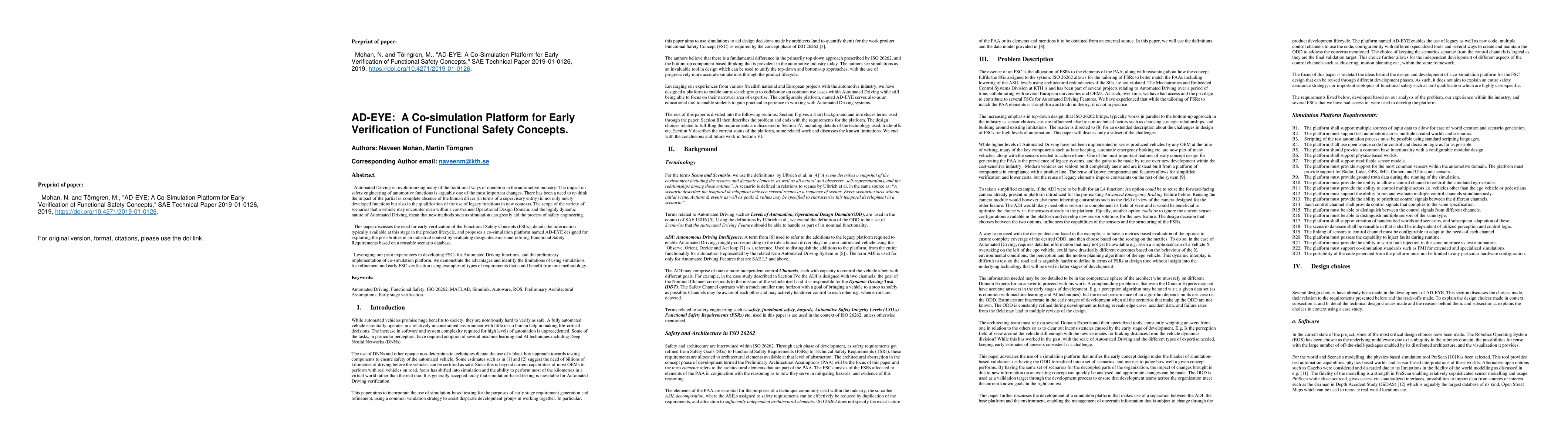 Automated Driving is revolutionizing many of the traditional ways of operation in the automotive industry. The impact on safety engineering of automotive functions is arguably one of the most important changes. There has been a need to re-think the impact of the partial or complete absence of the human driver (in terms of a supervisory entity) in not only newly developed functions but also in the qualification of the use of legacy functions in new contexts. The scope of the variety of scenarios that a vehicle may encounter even within a constrained Operational Design Domain, and the highly dynamic nature of Automated Driving, mean that new methods such as simulation can greatly aid the process of safety engineering. This paper discusses the need for early verification of the Functional Safety Concepts (FSCs), details the information typically available at this stage in the product lifecycle, and proposes a co-simulation platform named AD-EYE designed for exploiting the possibilities in an industrial context by evaluating design decisions and refining Functional Safety Requirements based on a reusable scenario database. Leveraging our prior experiences in developing FSCs for Automated Driving functions, and the preliminary implementation of co-simulation platform, we demonstrate the advantages and identify the limitations of using simulations for refinement and early FSC verification using examples of types of requirements that could benefit from our methodology.