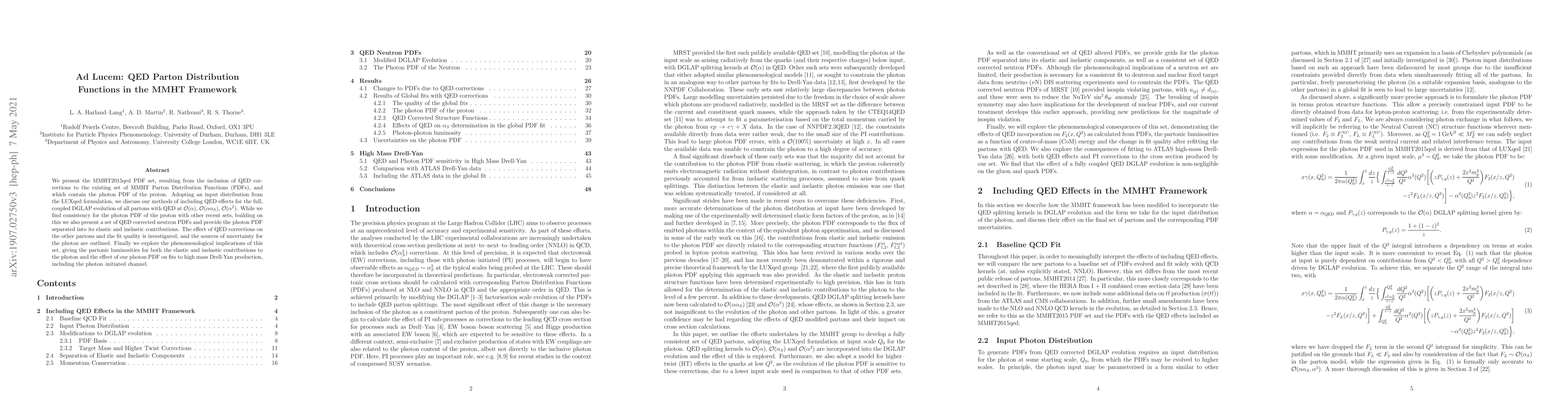 The MMHT2015qed PDF set includes QED corrections to proton parton distribution functions, providing improved consistency for the photon PDF and new insights into its elastic and inelastic contributions.