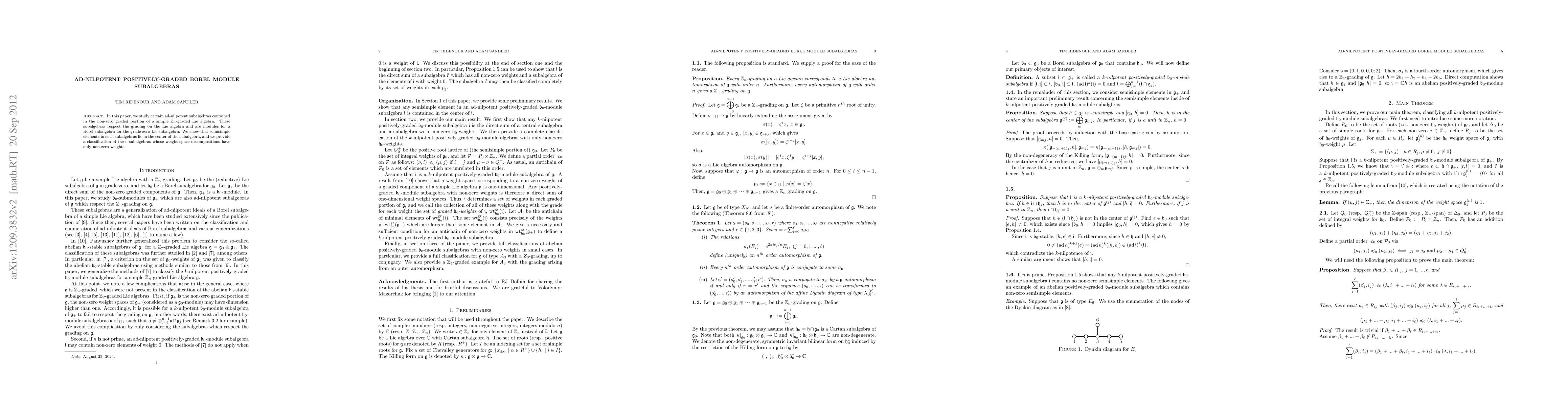 In this paper, we study certain ad-nilpotent subalgebras contained in the non-zero graded portion of a simple Z_n-graded Lie algebra. These subalgebras respect the grading on the Lie algebra and are modules for a Borel subalgebra for the grade-zero Lie subalgebra. We show that semisimple elements in such subalgebras lie in the center of the subalgebra, and we provide a classification of these subalgebras whose weight space decompositions have only non-zero weights.