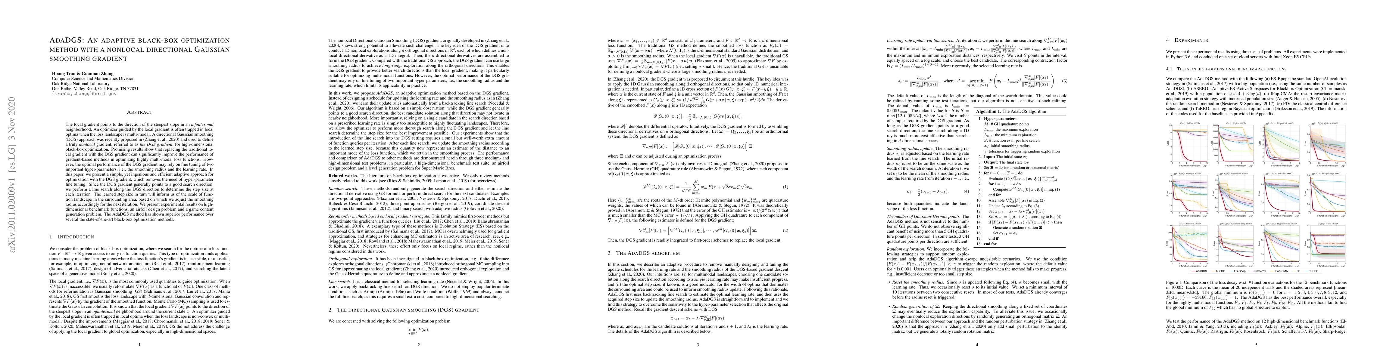 The paper introduces AdaDGS, an adaptive optimization method using a nonlocal directional Gaussian smoothing gradient, which eliminates the need for hyper-parameter tuning. The method outperforms state-of-the-art black-box optimization techniques on various high-dimensional problems.