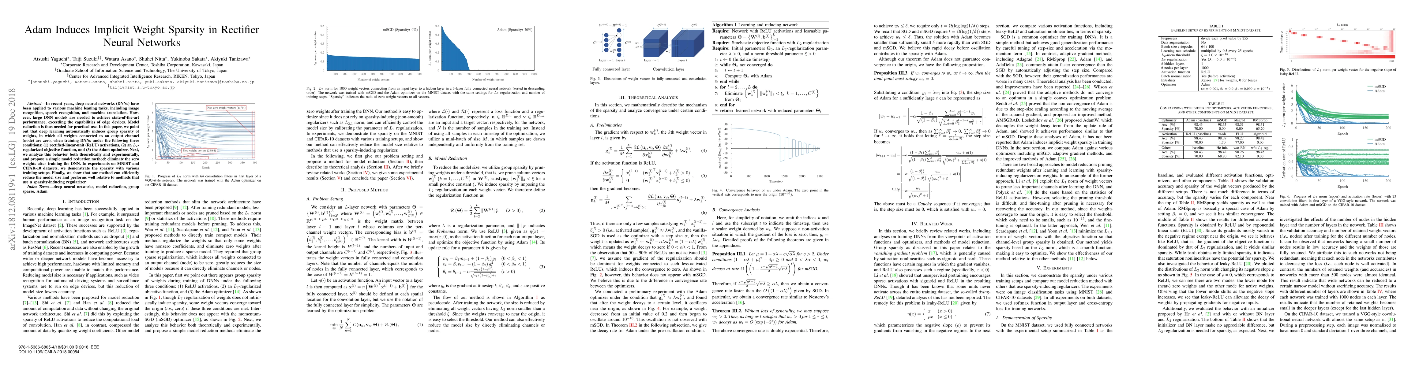 Deep neural networks automatically induce weight sparsity when trained with ReLU activations, L2 regularization, and Adam optimizer, which can be exploited to reduce model size. A simple method to eliminate zero weights after training is proposed, achieving efficient model reduction without compromising performance.