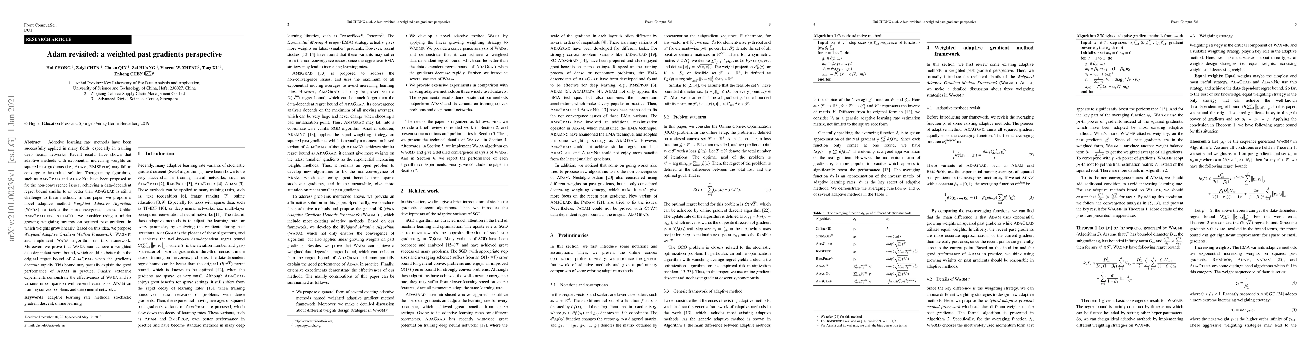 This paper proposes a novel adaptive learning method, WADA, to address non-convergence issues in adaptive learning rate algorithms like ADAM and RMSPROP. It introduces a linear growth weighting strategy for past gradients, achieving a better data-dependent regret bound compared to ADAGRAD, and demonstrates superior performance in training deep neural networks.