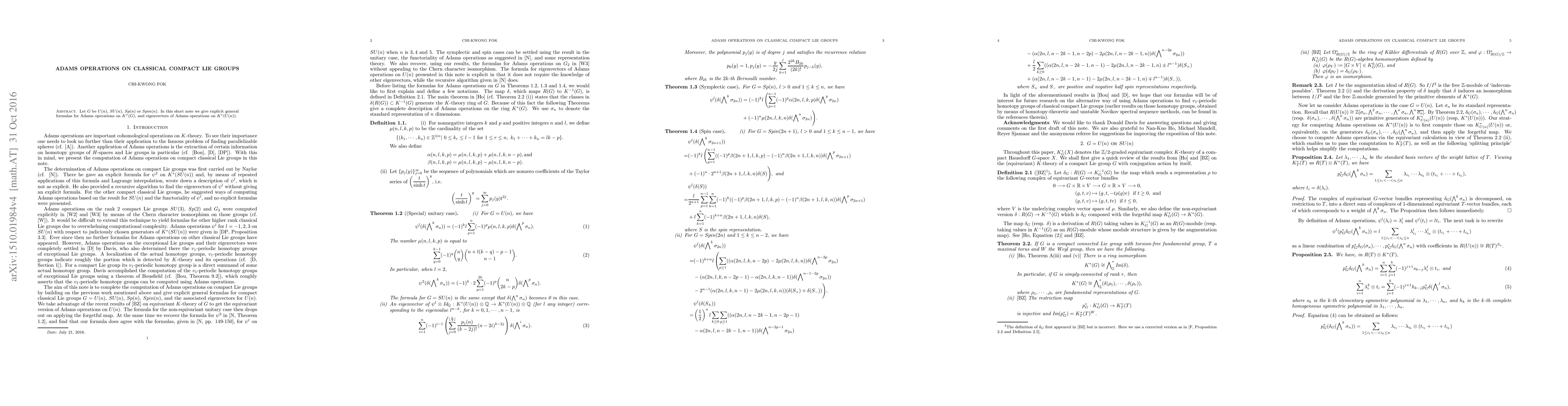Let $G$ be $U(n)$, $SU(n)$, $Sp(n)$ or $Spin(n)$. In this short note we give explicit general formulas for Adams operations on $K^*(G)$, and eigenvectors of Adams operations on $K^*(U(n))$.