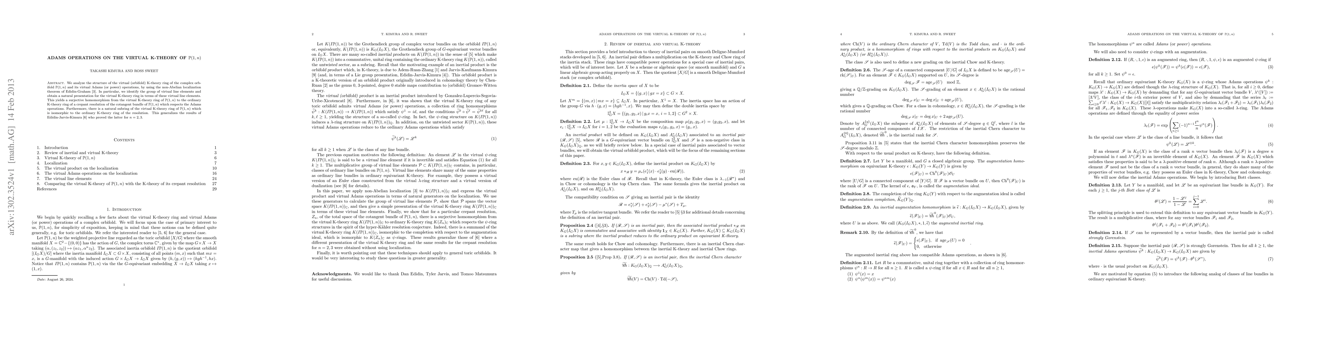 The paper investigates the structure of the virtual K-theory ring of the complex orbifold P(1,n) and its Adams operations, revealing a natural presentation using virtual line elements and a surjective homomorphism to ordinary K-theory of a crepant resolution. It generalizes prior work on n=2,3 by identifying a natural subring isomorphic to the ordinary K-theory ring of the resolution.