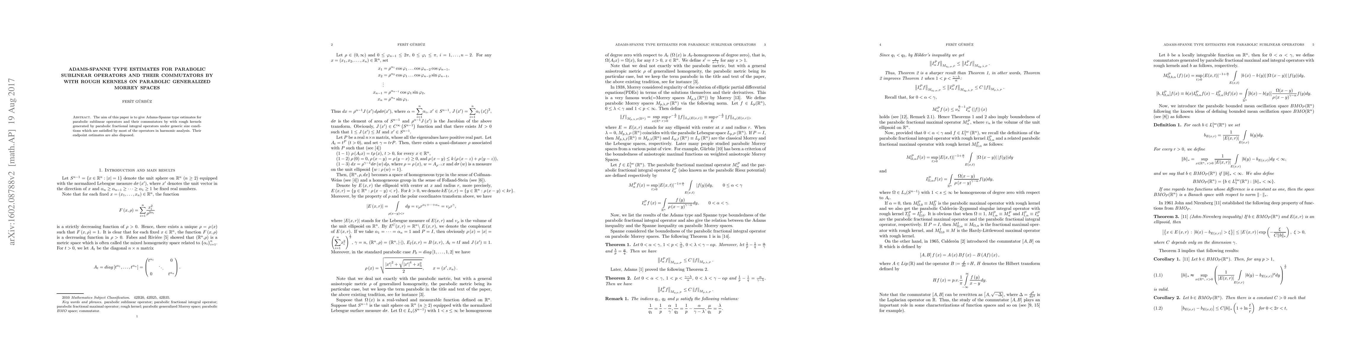 The aim of this paper is to give Adams-Spanne type estimates for parabolic sublinear operators and their commutators by with rough kernels generated by parabolic fractional integral operators under generic size conditions which are satisfied by most of the operators in harmonic analysis. Their endpoint estimates are also disposed.