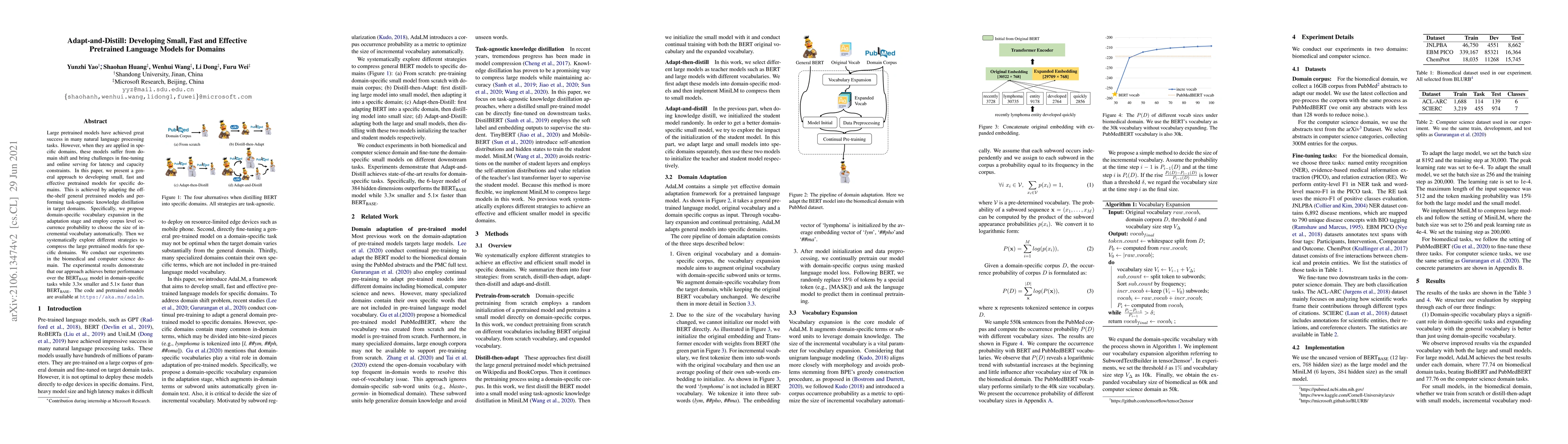 This research introduces a method to create smaller, faster, and effective pre-trained language models tailored for specific domains like biomedical and computer science. The approach involves adapting general pre-trained models and distilling knowledge via domain-specific vocabulary expansion, resulting in models that are 3.3x smaller and 5.1x faster than BERT BASE, without compromising performance on domain-specific tasks.