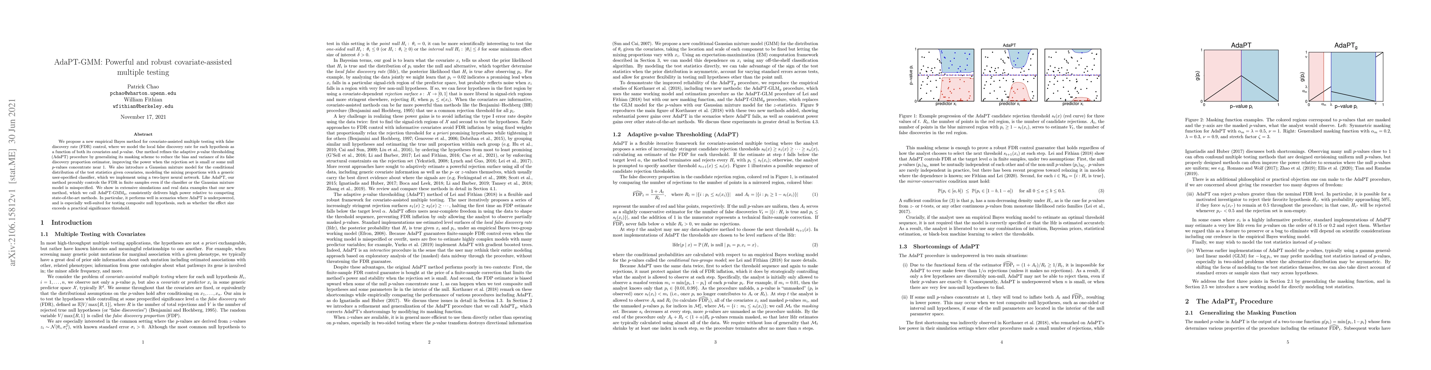 AdaPT-GMM is an advanced empirical Bayes method for covariate-assisted multiple testing with FDR control, enhancing the AdaPT procedure by incorporating a Gaussian mixture model to improve power and accuracy. It effectively handles scenarios where traditional methods underperform, especially for composite null hypotheses.