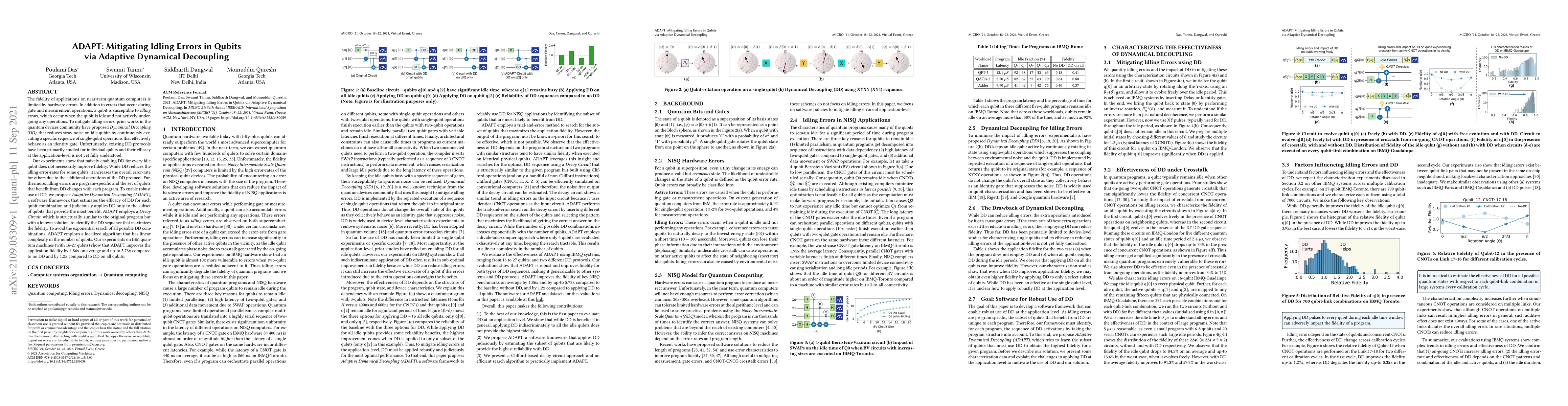 Researchers developed Adaptive Dynamical Decoupling (ADAPT) to mitigate idling errors in quantum computers, improving application fidelity by 1.86x on average.