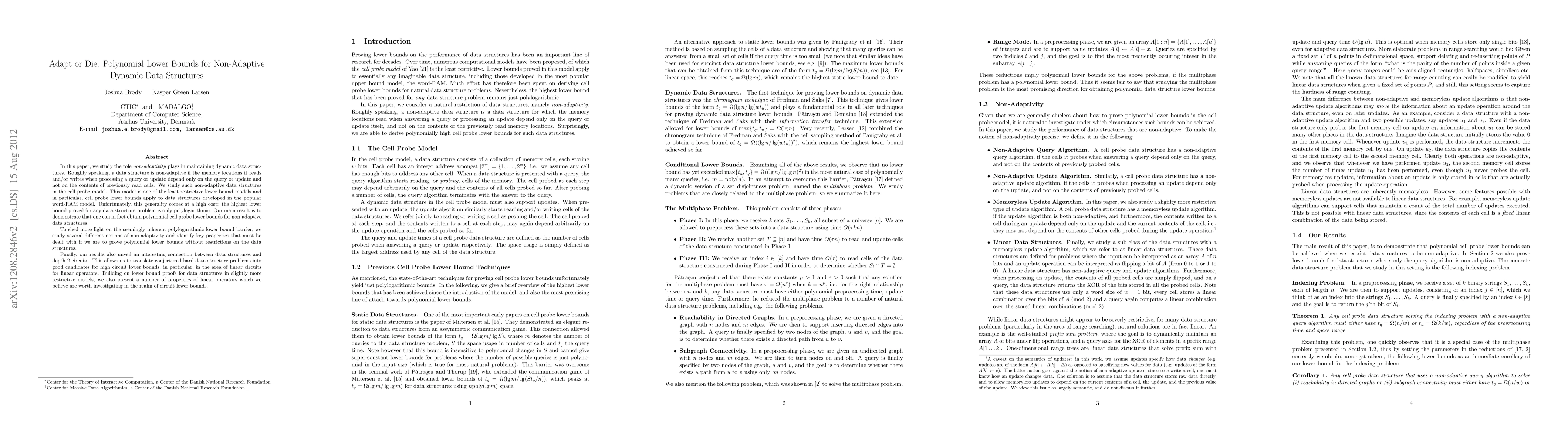 In this paper, we study the role non-adaptivity plays in maintaining dynamic data structures. Roughly speaking, a data structure is non-adaptive if the memory locations it reads and/or writes when processing a query or update depend only on the query or update and not on the contents of previously read cells. We study such non-adaptive data structures in the cell probe model. This model is one of the least restrictive lower bound models and in particular, cell probe lower bounds apply to data structures developed in the popular word-RAM model. Unfortunately, this generality comes at a high cost: the highest lower bound proved for any data structure problem is only polylogarithmic. Our main result is to demonstrate that one can in fact obtain polynomial cell probe lower bounds for non-adaptive data structures. To shed more light on the seemingly inherent polylogarithmic lower bound barrier, we study several different notions of non-adaptivity and identify key properties that must be dealt with if we are to prove polynomial lower bounds without restrictions on the data structures. Finally, our results also unveil an interesting connection between data structures and depth-2 circuits. This allows us to translate conjectured hard data structure problems into good candidates for high circuit lower bounds; in particular, in the area of linear circuits for linear operators. Building on lower bound proofs for data structures in slightly more restrictive models, we also present a number of properties of linear operators which we believe are worth investigating in the realm of circuit lower bounds.