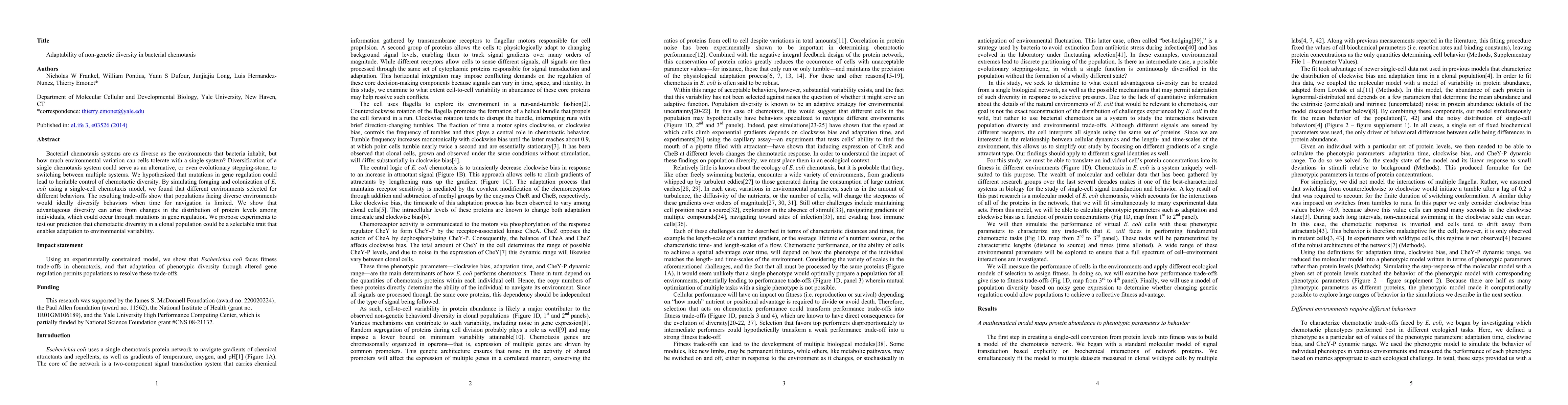 This research explores how bacterial chemotaxis systems adapt to diverse environments through non-genetic diversity, demonstrating that mutations in gene regulation can lead to heritable chemotactic diversity. The study suggests that such adaptability could serve as an evolutionary stepping-stone, proposing experiments to test if chemotactic diversity in clonal populations enhances adaptation to environmental variability.