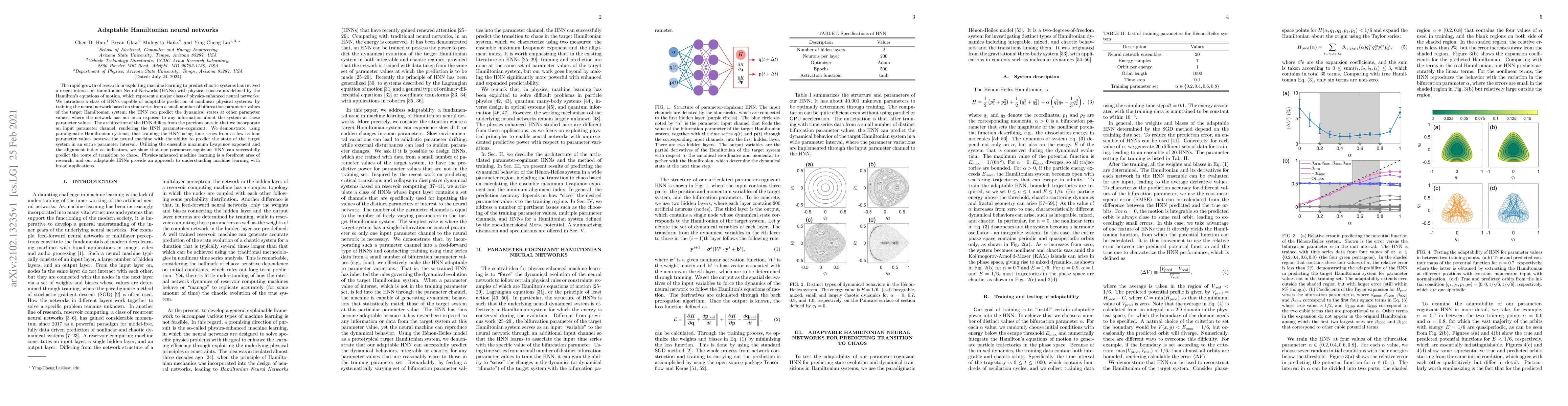 This paper introduces adaptable Hamiltonian Neural Networks (HNNs) that can predict the dynamics of nonlinear physical systems across a range of parameter values, even when trained on data from only a few parameter values. The HNNs incorporate an input parameter channel, making them parameter-cognizant, and demonstrate successful prediction of chaotic transitions using ensemble maximum Lyapunov exponent and alignment index.