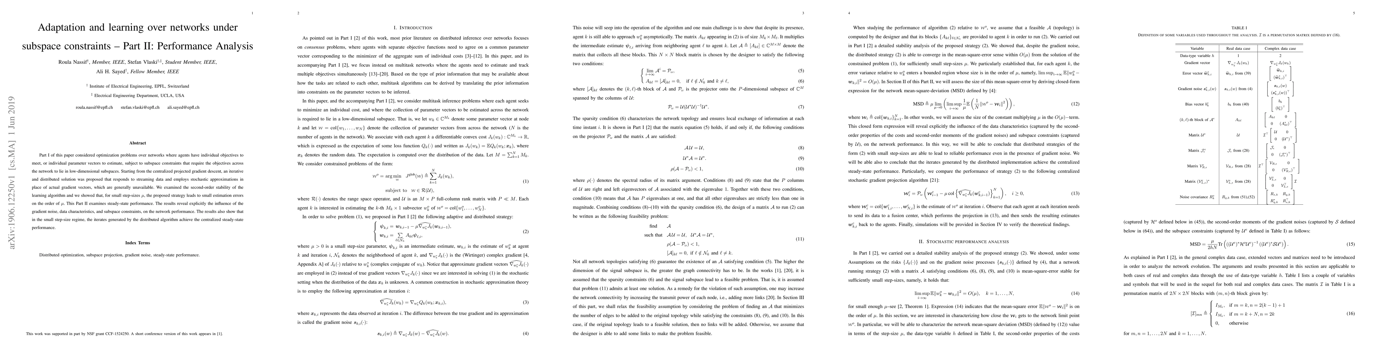 Part I of this paper considered optimization problems over networks where agents have individual objectives to meet, or individual parameter vectors to estimate, subject to subspace constraints that require the objectives across the network to lie in low-dimensional subspaces. Starting from the centralized projected gradient descent, an iterative and distributed solution was proposed that responds to streaming data and employs stochastic approximations in place of actual gradient vectors, which are generally unavailable. We examined the second-order stability of the learning algorithm and we showed that, for small step-sizes $\mu$, the proposed strategy leads to small estimation errors on the order of $\mu$. This Part II examines steady-state performance. The results reveal explicitly the influence of the gradient noise, data characteristics, and subspace constraints, on the network performance. The results also show that in the small step-size regime, the iterates generated by the distributed algorithm achieve the centralized steady-state performance.