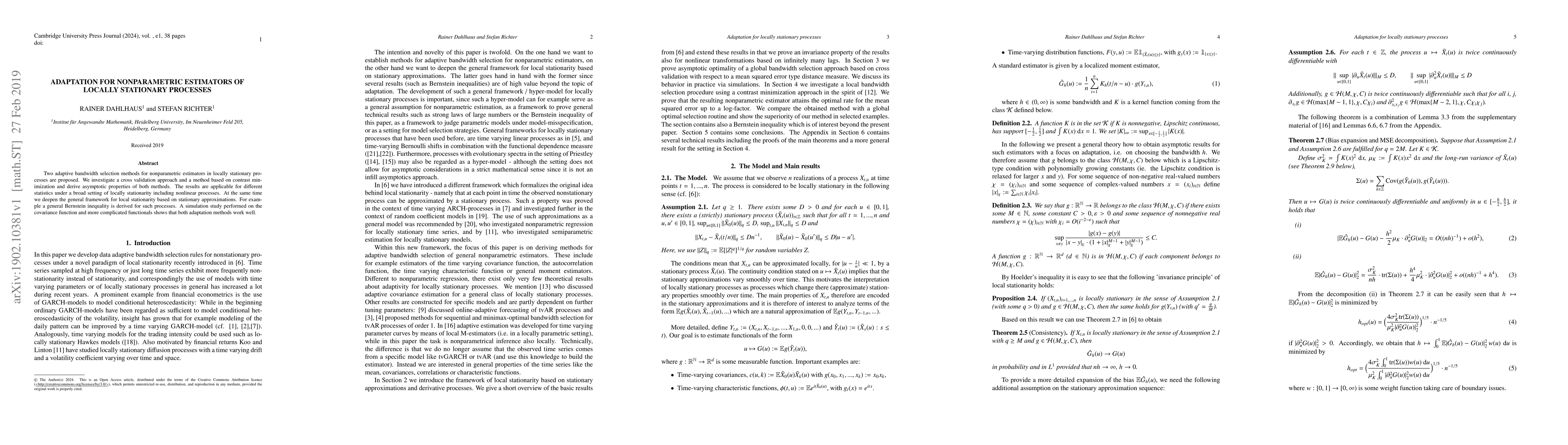 This paper proposes two adaptive bandwidth selection methods for nonparametric estimators in locally stationary processes, deriving their asymptotic properties and demonstrating their effectiveness through simulations. It also extends the framework for local stationarity and includes a general Bernstein inequality for these processes.