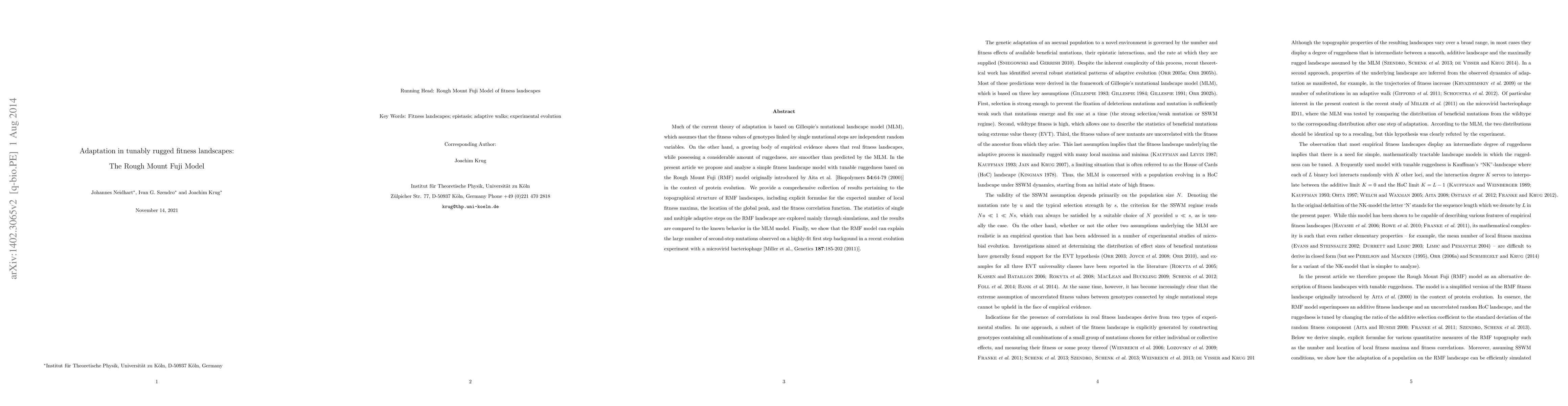 Much of the current theory of adaptation is based on Gillespie's mutational landscape model (MLM), which assumes that the fitness values of genotypes linked by single mutational steps are independent random variables. On the other hand, a growing body of empirical evidence shows that real fitness landscapes, while possessing a considerable amount of ruggedness, are smoother than predicted by the MLM. In the present article we propose and analyse a simple fitness landscape model with tunable ruggedness based on the Rough Mount Fuji (RMF) model originally introduced by Aita et al. [Biopolymers 54:64-79 (2000)] in the context of protein evolution. We provide a comprehensive collection of results pertaining to the topographical structure of RMF landscapes, including explicit formulae for the expected number of local fitness maxima, the location of the global peak, and the fitness correlation function. The statistics of single and multiple adaptive steps on the RMF landscape are explored mainly through simulations, and the results are compared to the known behavior in the MLM model. Finally, we show that the RMF model can explain the large number of second-step mutations observed on a highly-fit first step backgound in a recent evolution experiment with a microvirid bacteriophage [Miller et al., Genetics 187:185-202 (2011)].