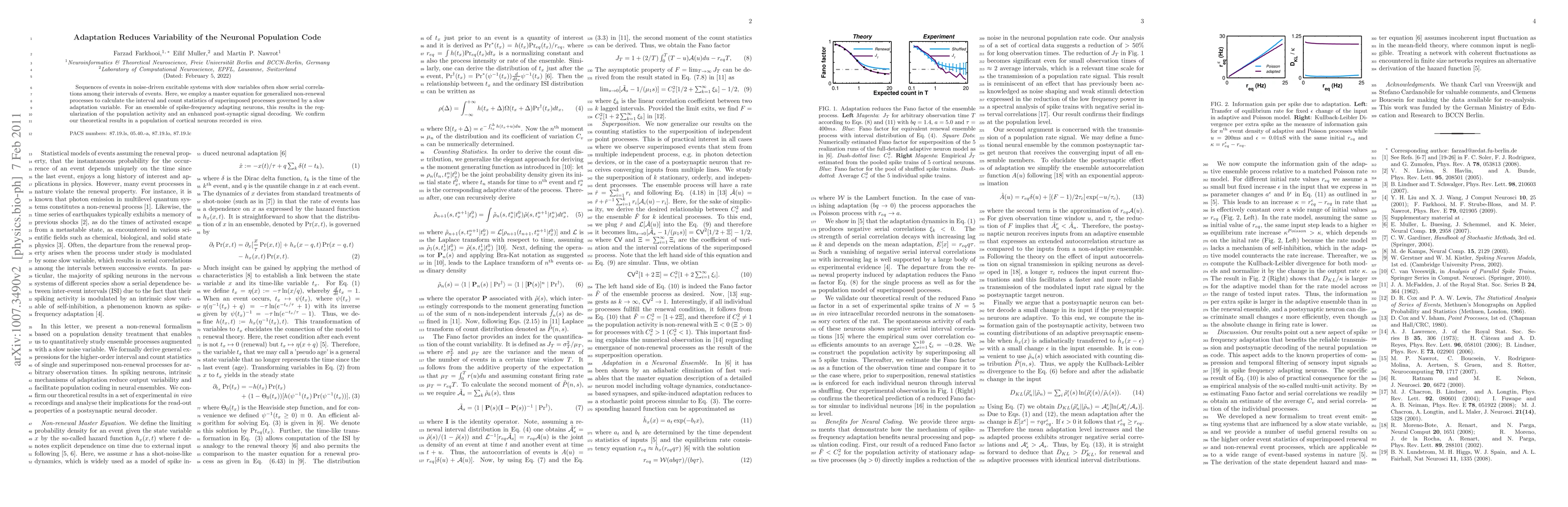 Sequences of events in noise-driven excitable systems with slow variables often show serial correlations among their intervals of events. Here, we employ a master equation for general non-renewal processes to calculate the interval and count statistics of superimposed processes governed by a slow adaptation variable. For an ensemble of spike-frequency adapting neurons this results in the regularization of the population activity and an enhanced post-synaptic signal decoding. We confirm our theoretical results in a population of cortical neurons.